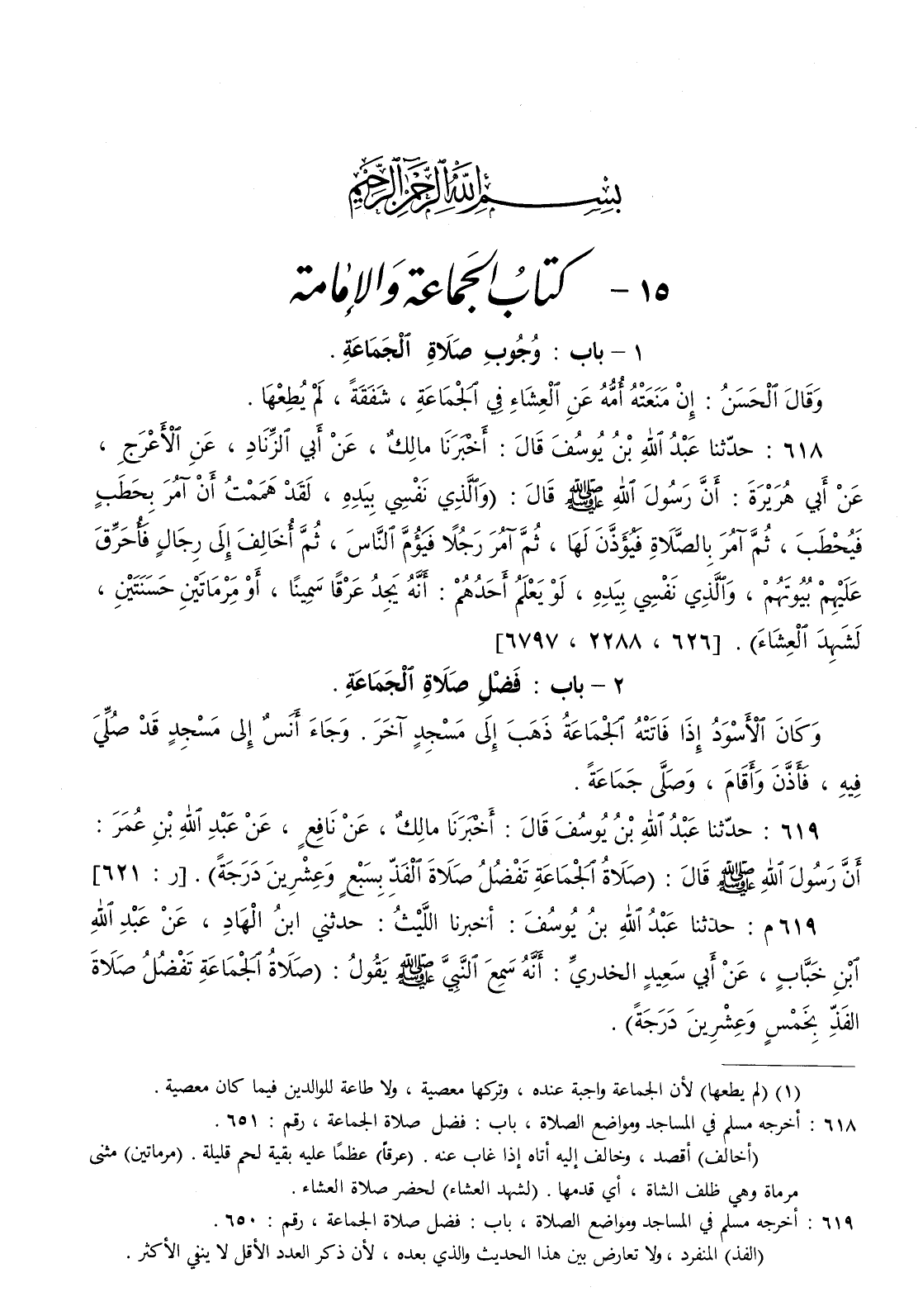 619 - حدثنا عبد الله بن يوسف قال أخبرنا مالك عن نافع عن عبد الله بن عمر