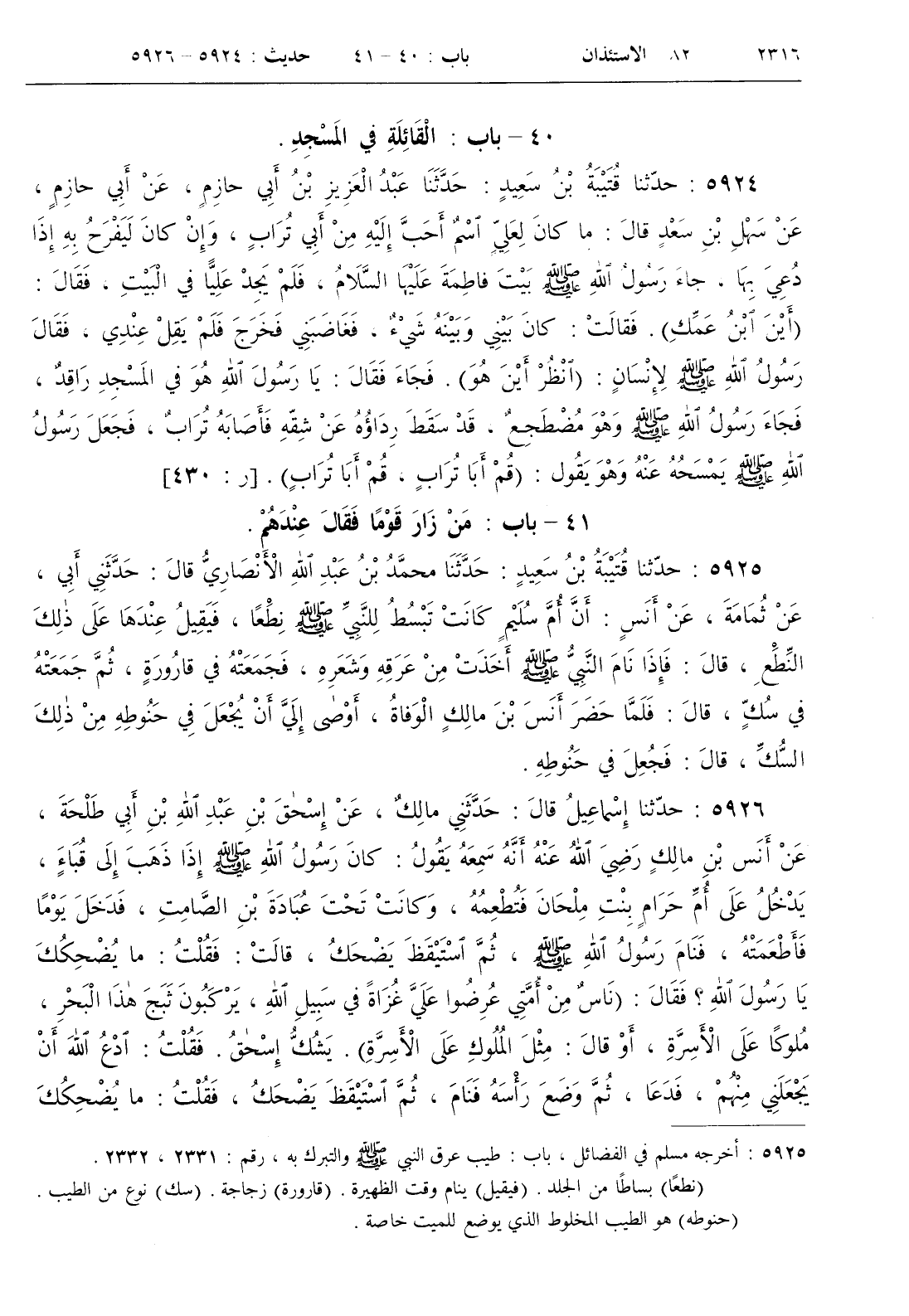 [ ش أخرجه مسلم في الفضائل باب طيب عرق النبي صلى الله عليه و سلم والتبرك به رقم 2331 ، 2332