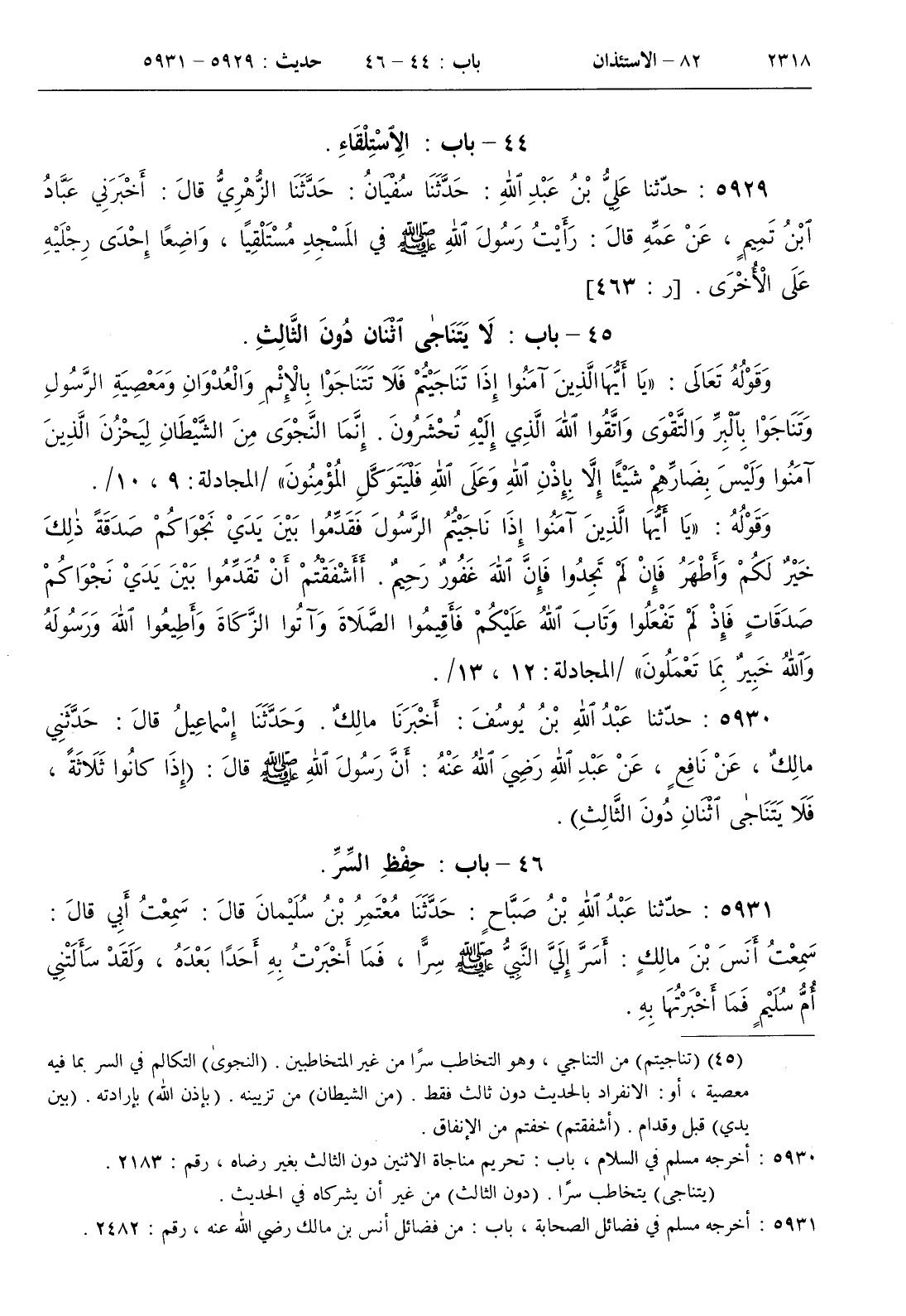 47 - باب إذا كانوا أكثر من ثلاثة فلا بأس بالمسارة والمناجاة