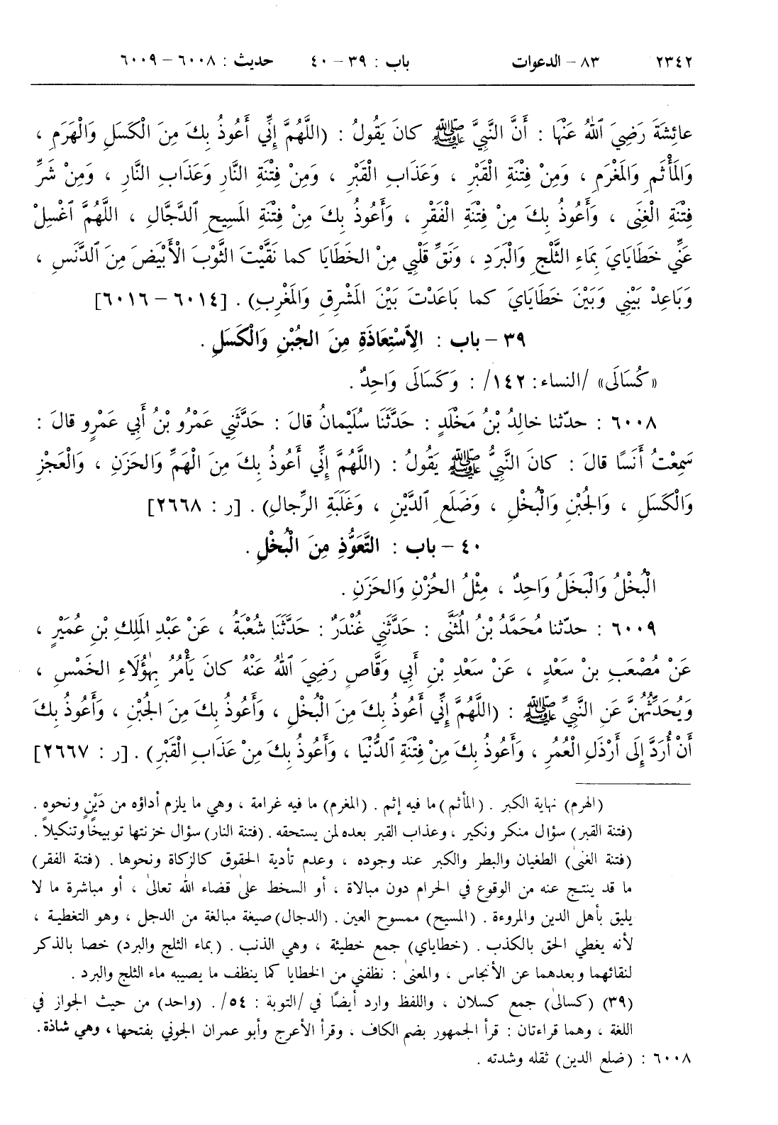 : عن سعد بن أبي وقاص رضي الله عنه كان يأمر بهؤلاء الخمس ويحدثهن عن النبي صلى الله عليه و سلم ( اللهم إني أعوذ بك من البخل وأعوذ بك من الجبن وأعوذ بك أن أرد إلى أرذل العمر وأعوذ بك من فتنة الدنيا وأعوذ بك من عذاب القبر )