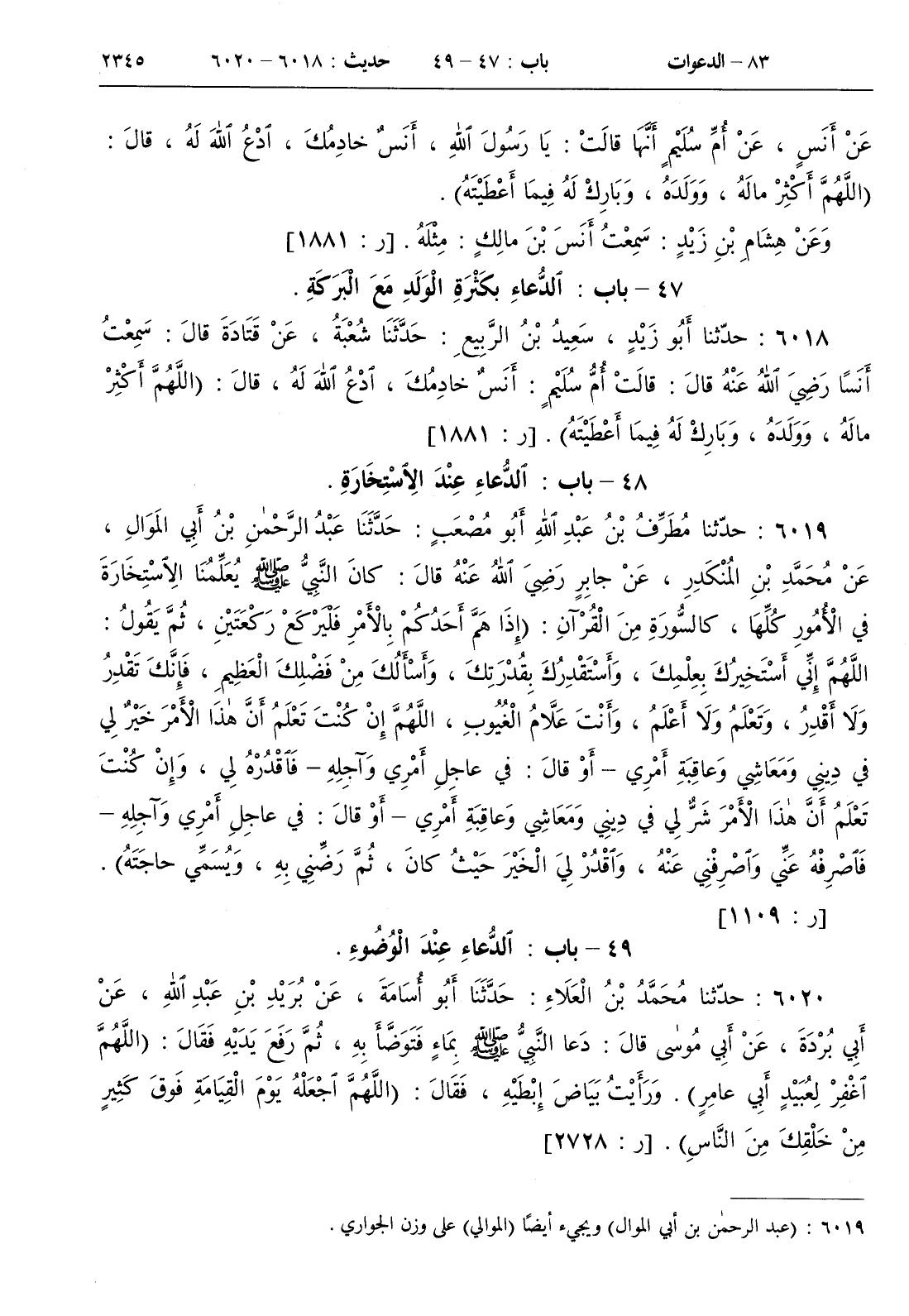 6019 - حدثنا مطرف بن عبد الله أبو مصعب حدثنا عبد الرحمن بن أبي الموال عن محمد بن المنكدر عن جابر رضي الله عنه قال