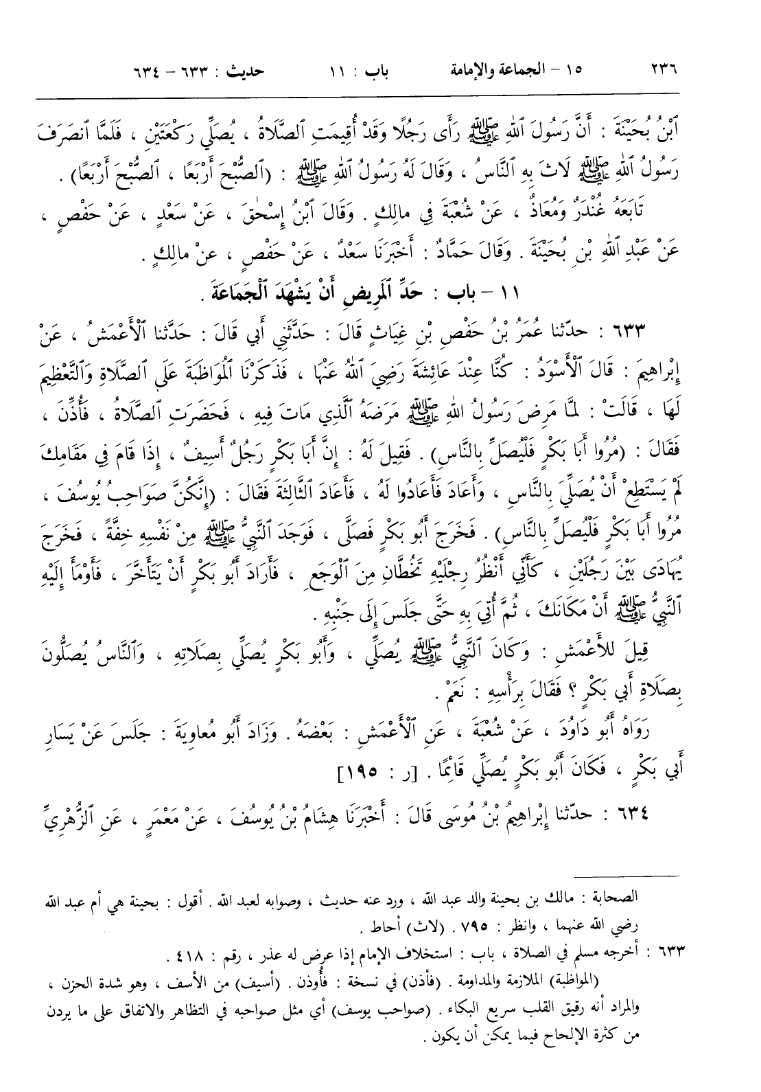 قيل للأعمش وكان النبي صلى الله عليه و سلم يصلي وأبو بكر يصلي بصلاته والناس يصلون بصلاة أبي بكر ؟ فقال برأسه نعم