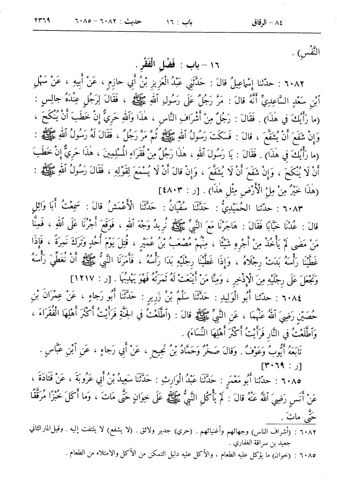 6084 - حدثنا أبو الوليد حدثنا سلم بن زرير حدثنا أبو رجاء عن عمران بن حصين رضي الله عنهما
