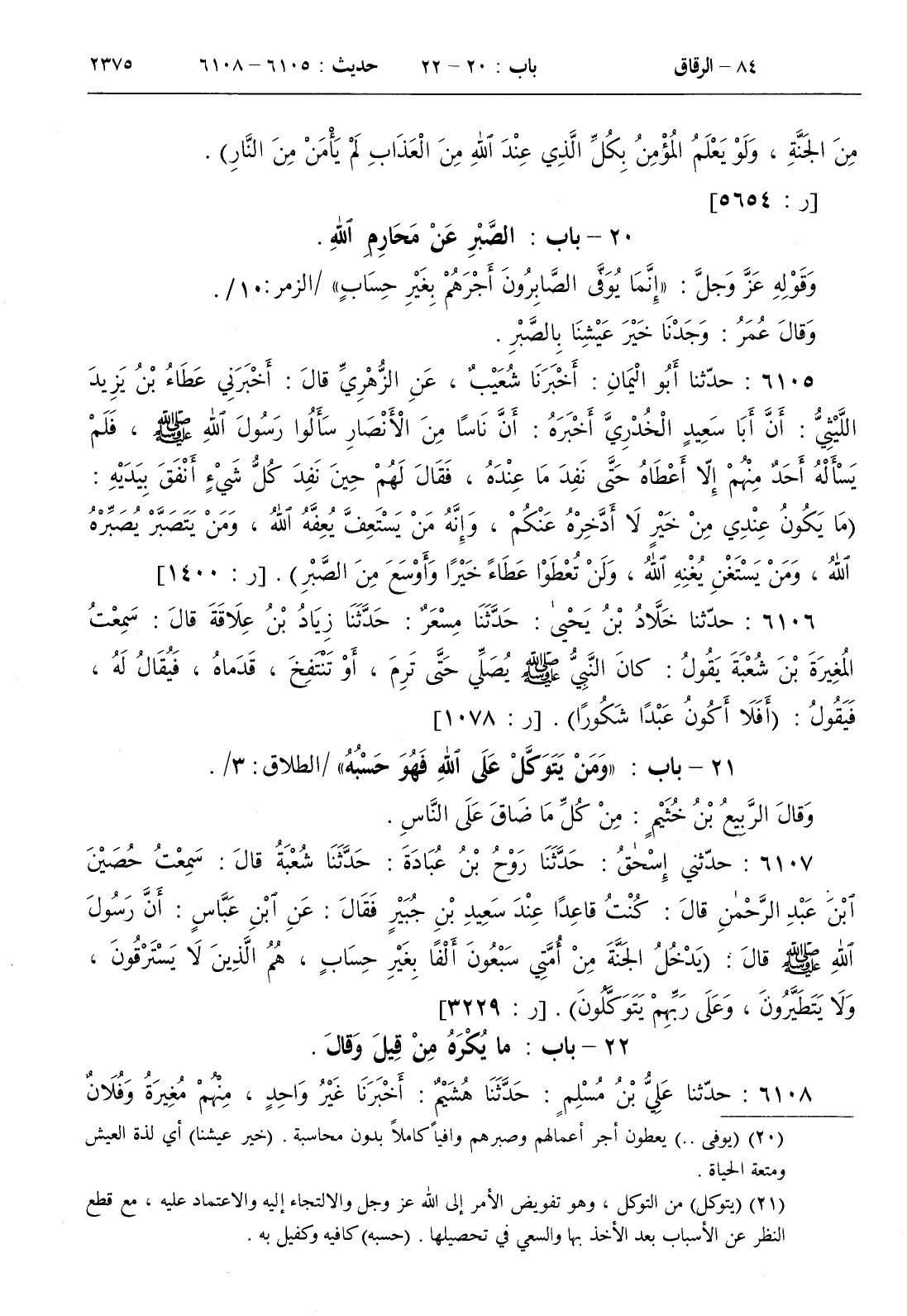 21 - باب ( ومن يتوكل على الله فهو حسبه ) / الطلاق 3 /