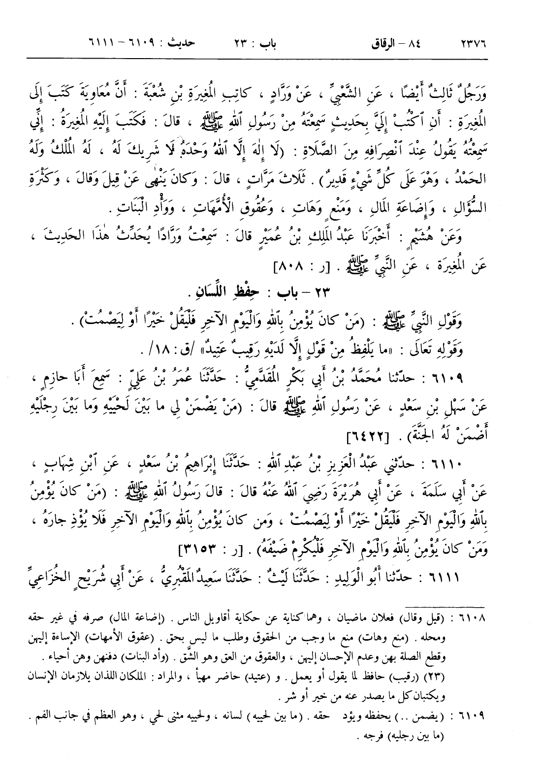 [ ش ( يضمن . . ) يحفظه ويؤد حقه . ( ما بين لحييه ) لسانه ولحييه مثنى لحي وهو العظم في جانب الفم . ( ما بين رجليه ) فرجه ]
