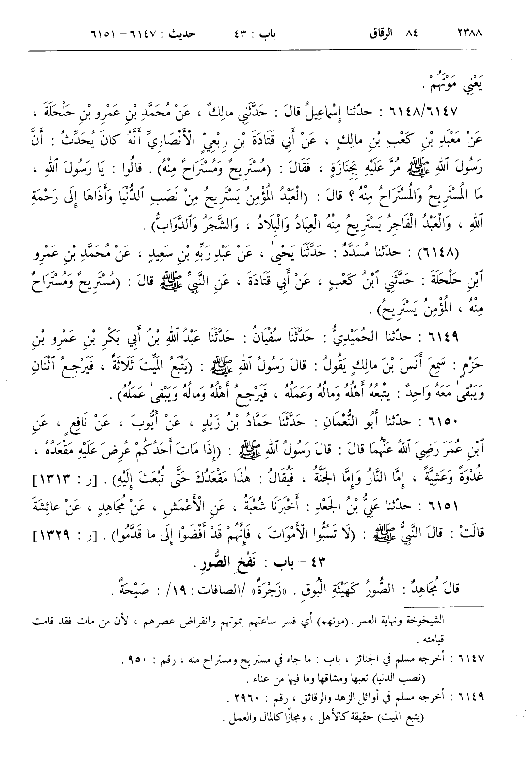 [ ش أخرجه مسلم في الجنائز باب ما جاء في مستريح ومستراح منه رقم 950
