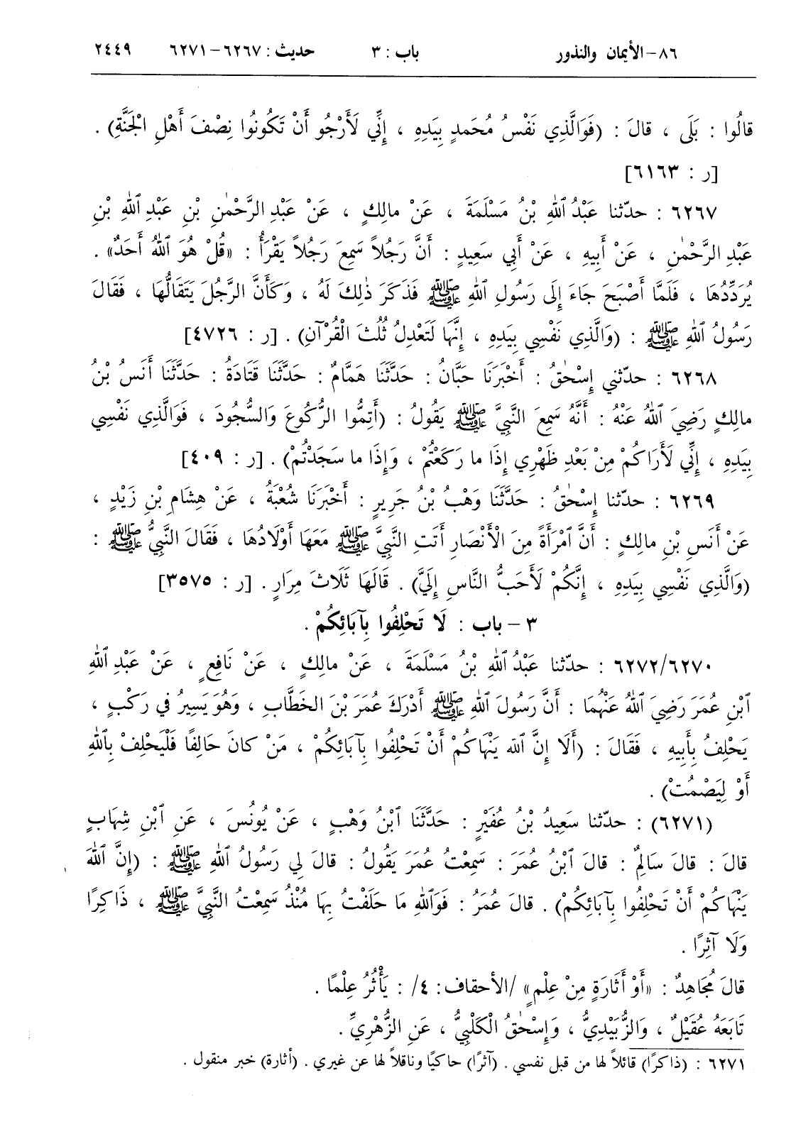 6271 - حدثنا سعيد بن عفير حدثنا ابن وهب عن يونس عن ابن شهاب قال قال سالم قال ابن عمر سمعت عمر يقول