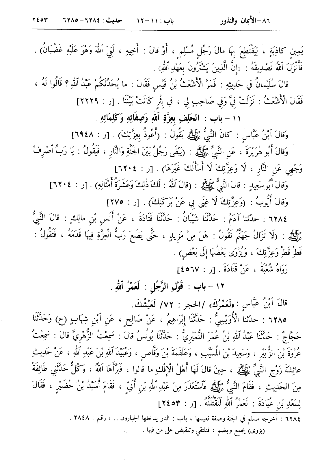 : قال النبي صلى الله عليه و سلم ( لا تزال جهنم تقول هل من مزيد حتى يضع رب العزة فيها قدمه فتقول قط قط وعزتك ويزوى بعضها إلى بعض )