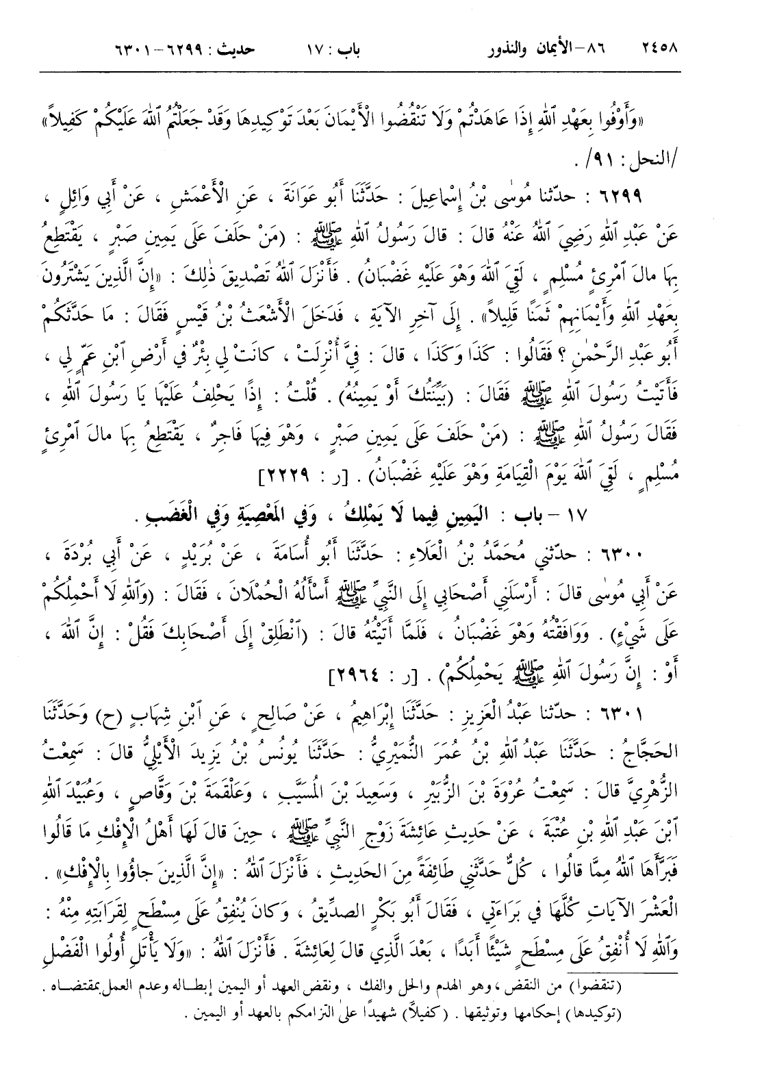 17 - باب اليمين فيما لا يملك وفي المعصية وفي الغضب