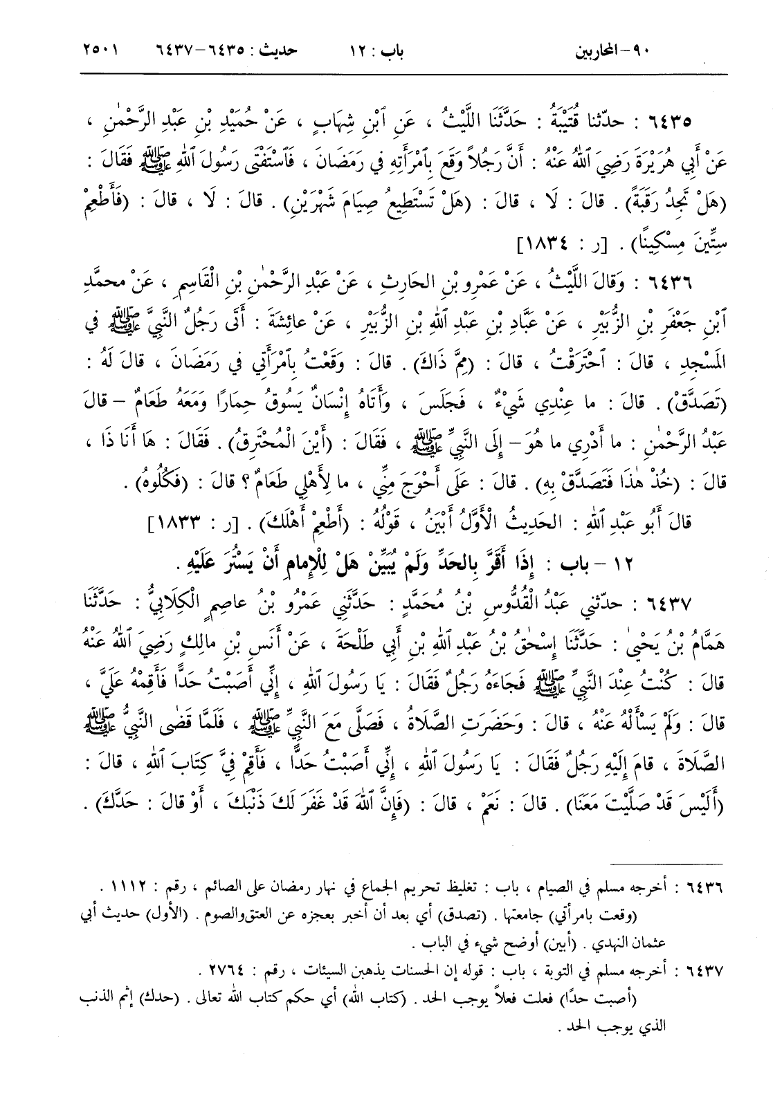 12 - باب إذا أقر بالحد ولم يبين هل للإمام أن يستر عليه