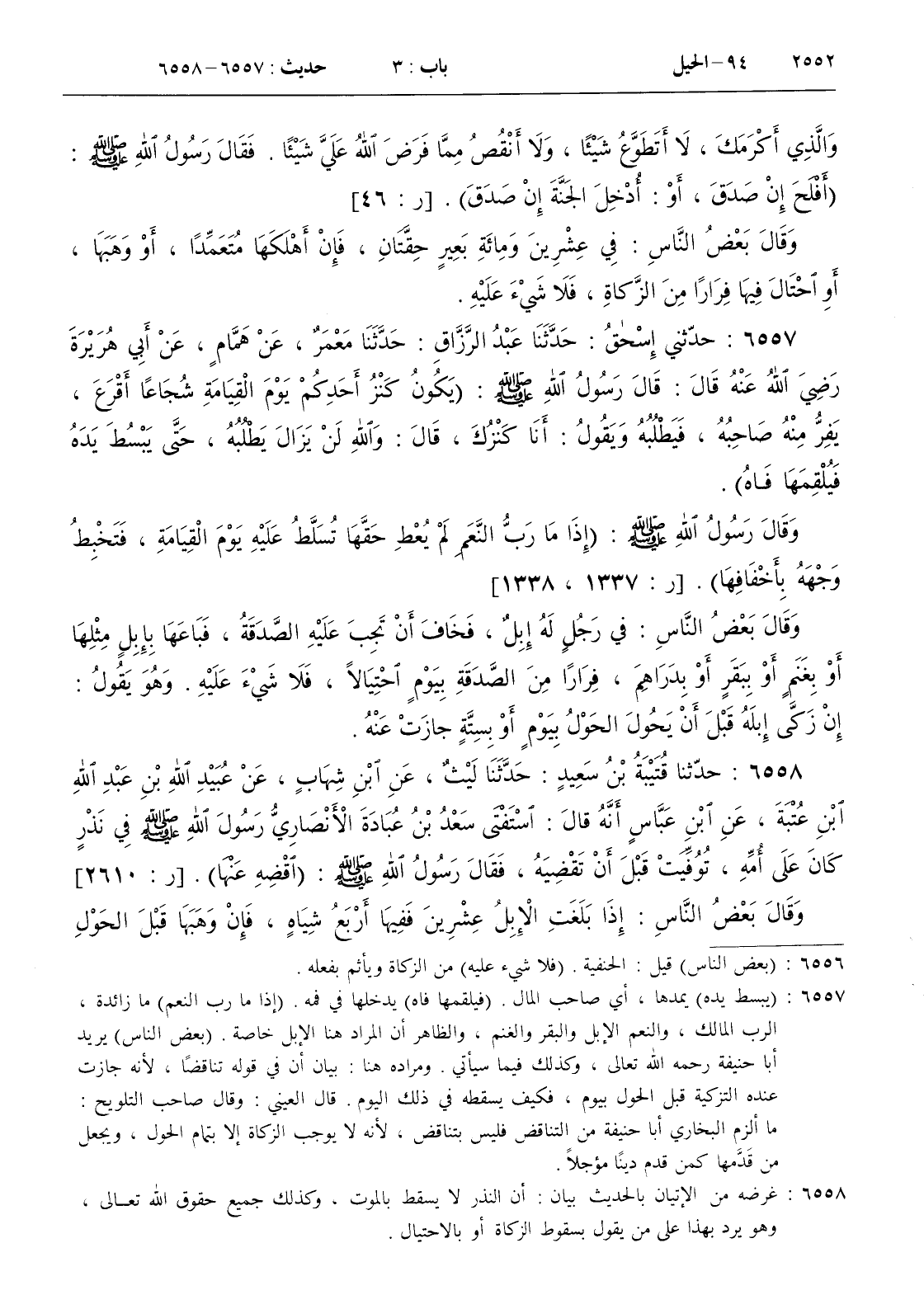 : قال رسول الله صلى الله عليه و سلم ( يكون كنز أحدكم يوم القيامة شجاعا أقرع يفر منه صاحبه فيطلبه ويقول أنا كنزك قال والله لن يزال يطلبه حتى يبسط يده فيلقمها فاه ) . وقال رسول الله صلى الله عليه و سلم ( إذا ما رب النعم لم يعط حقها تسلط عليه يوم القيامة فتخبط وجهه بأخفافها )