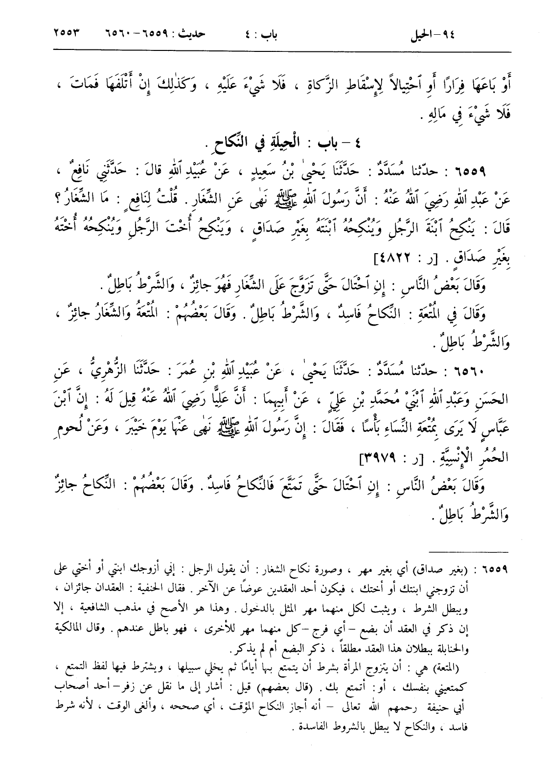 6560 - حدثنا مسدد حدثنا يحيى عن عبيد الله بن عمر حدثنا الزهري عن الحسن وعبد الله ابني محمد بن علي عن أبيهما
