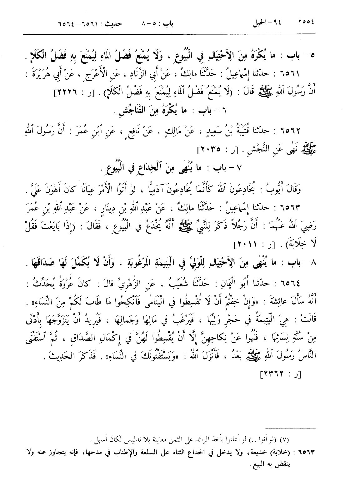: أن رجلا ذكر للنبي صلى الله عليه و سلم أنه يخدع في البيوع فقال ( إذا بايعت فقل لا خلابة )