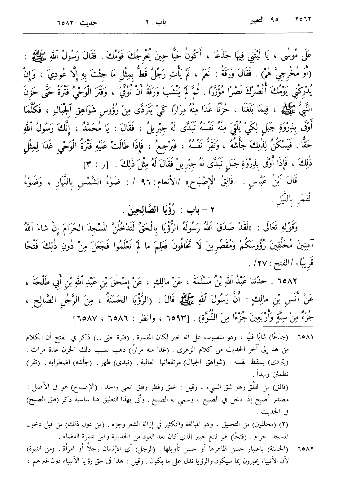 : أن رسول الله صلى الله عليه و سلم قال ( الرؤيا الحسنة من الرجل الصالح جزء من ستة وأربعين جزءا من النبوة )