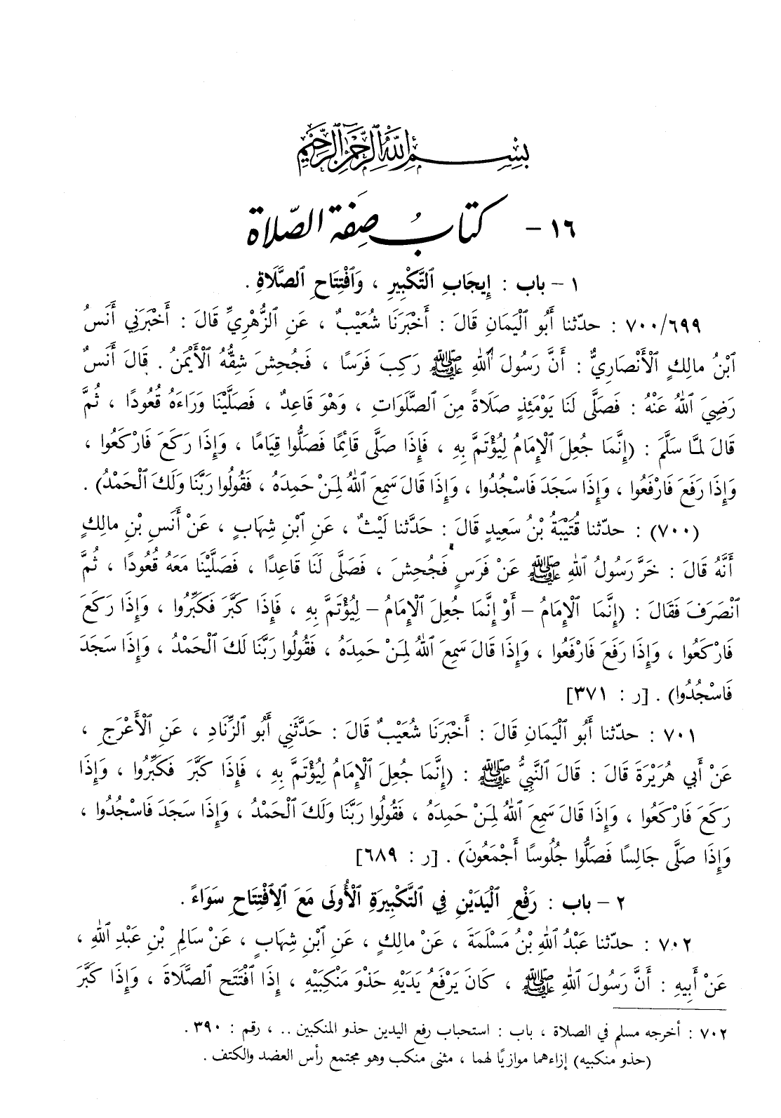 702 - حدثنا عبد الله بن مسلمة عن مالك عن ابن شهاب عن سالم بن عبد الله عن أبيه