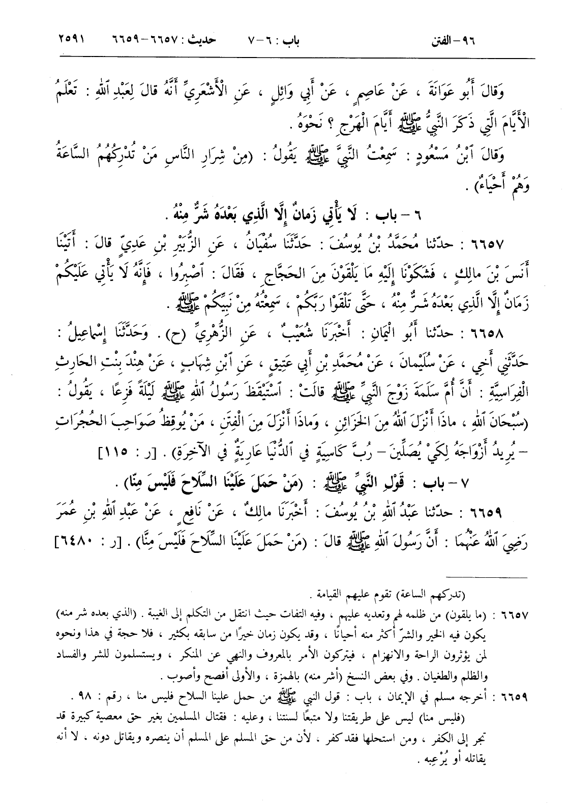 7 - باب قول النبي صلى الله عليه و سلم ( من حمل علينا السلاح فليس منا )