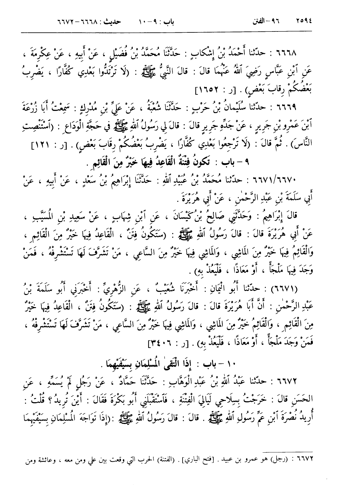 9 - باب تكون فتنة القاعد فيها خير من القائم