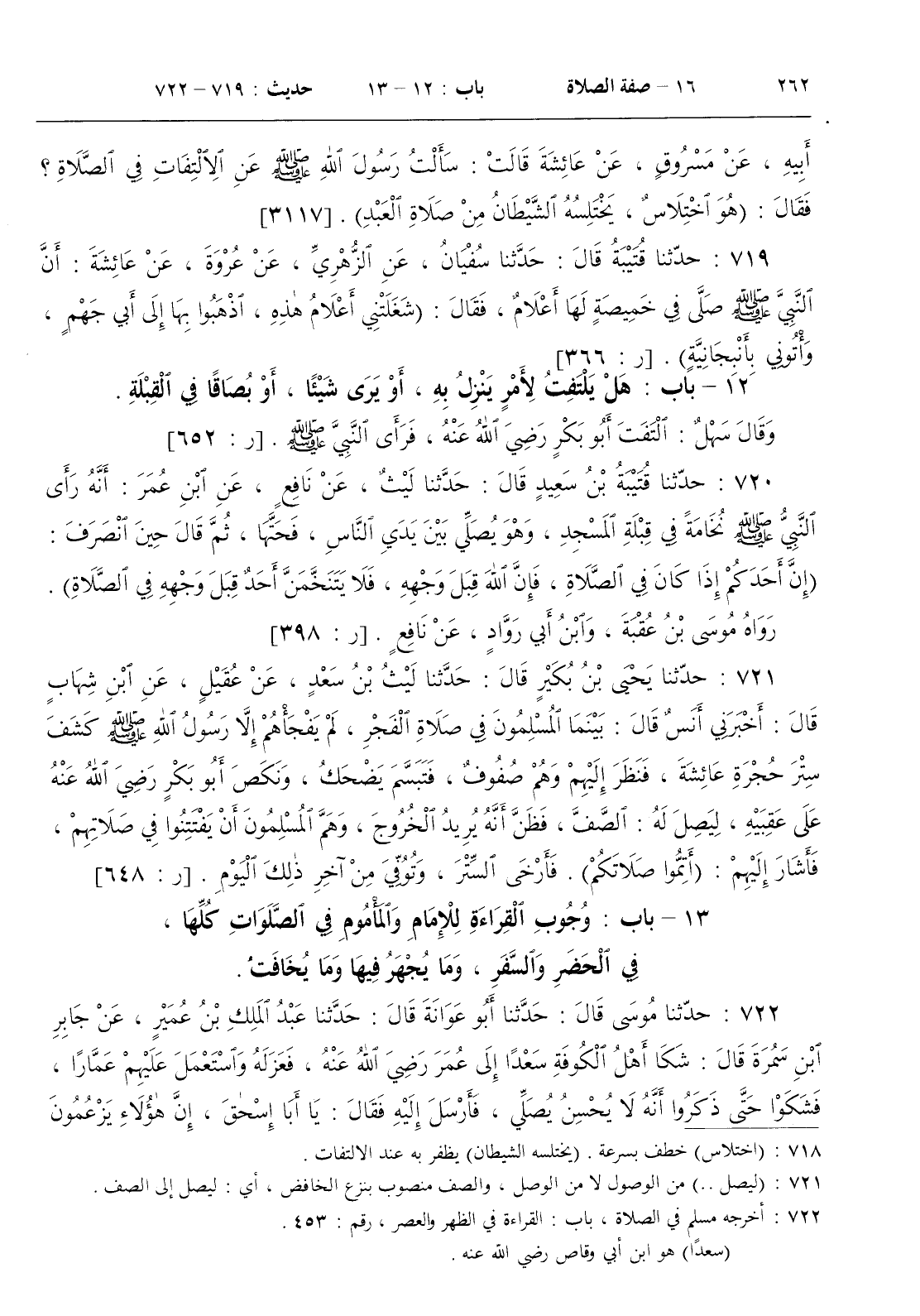 12 - باب هل يلتفت لأمر ينزل به أو يرى شيئا أوبصاقا في القبله