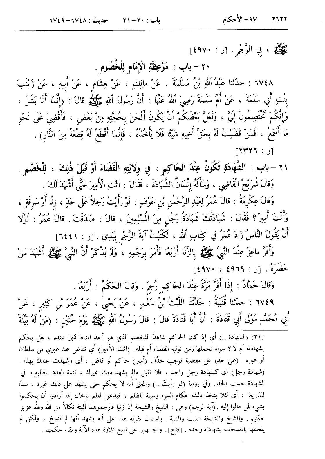 : أن رسول الله صلى الله عليه و سلم قال ( إنما أنا بشر وإنكم تختصمون إلي ولعل بعضكم أن يكون ألحن بحجته من بعض فأقضي له على نحو ما أسمع فمن قضيت له بحق أخيه شيئا فلا يأخذه فإنما أقطع له قطعة من النار )