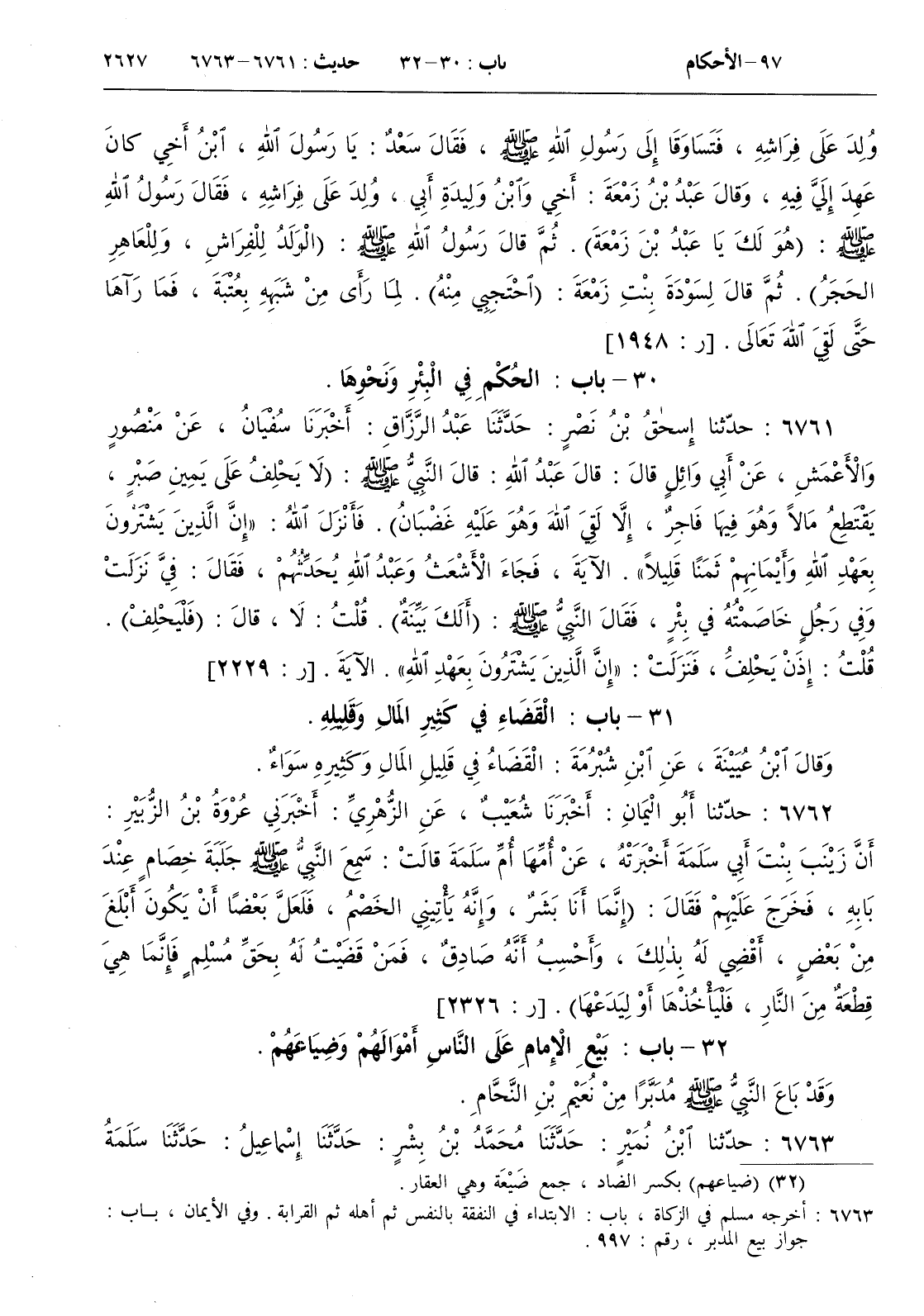 31 - باب القضاء في كثير المال وقليله
