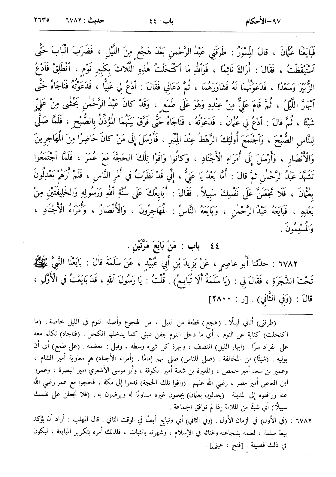 : بايعنا النبي صلى الله عليه و سلم تحت الشجرة فقال لي ( يا سلمة ألا تبايع ) . قلت يا رسول الله قد بايعت في الأول قال ( وفي الثاني )