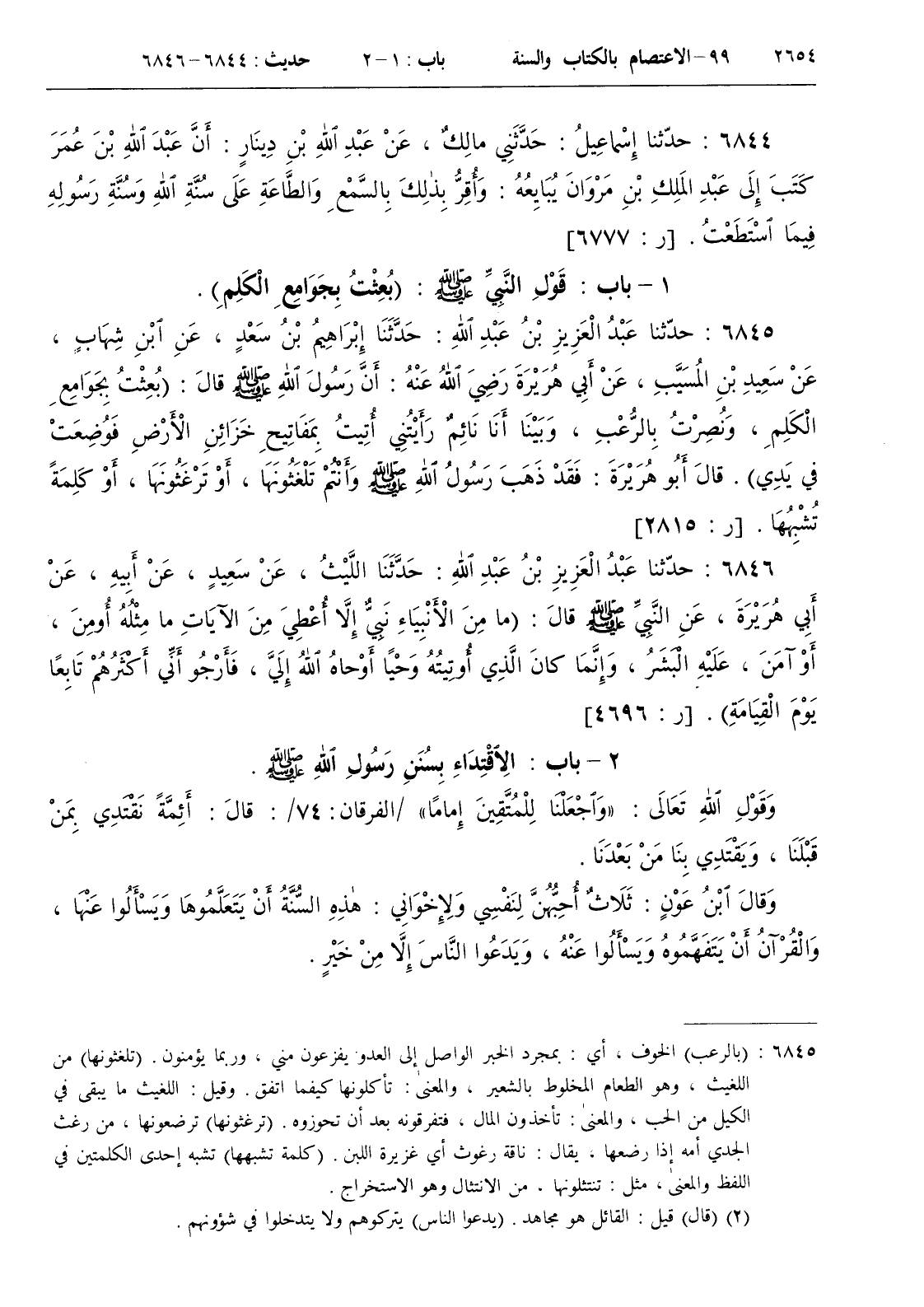 1 - باب قول النبي صلى الله عليه و سلم ( بعثت بجوامع الكلم )