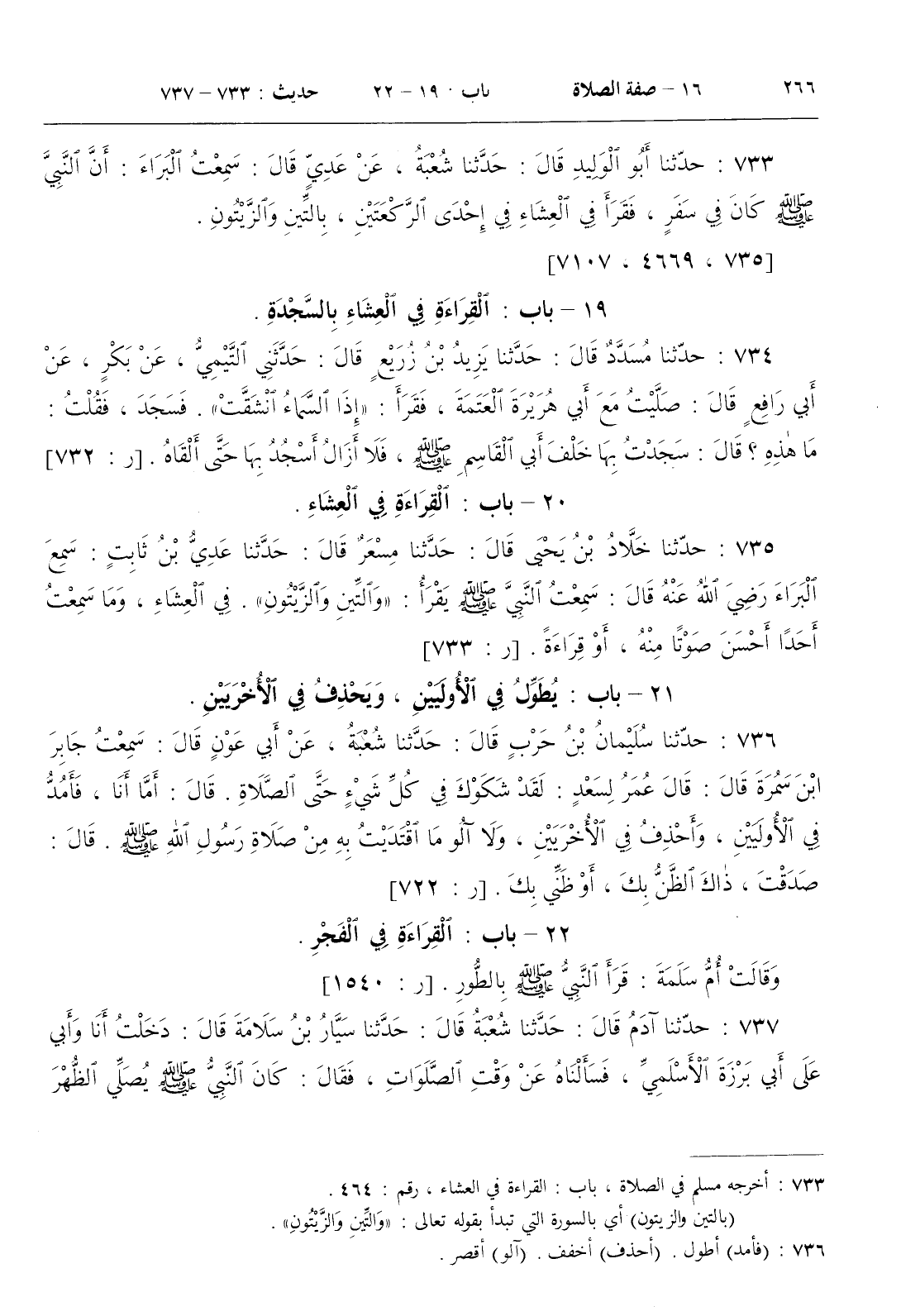 [ ش أخرجه مسلم في الصلاة باب القراءة في العشاء رقم 464