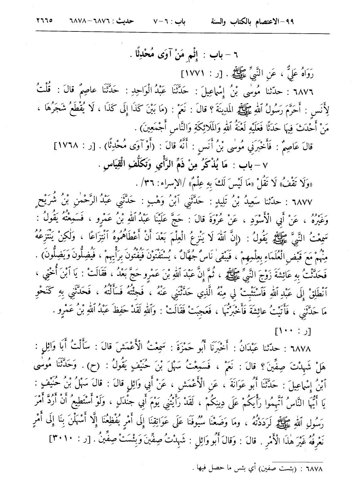 7 - باب ما يذكر من ذم الرأي وتكلف القياس