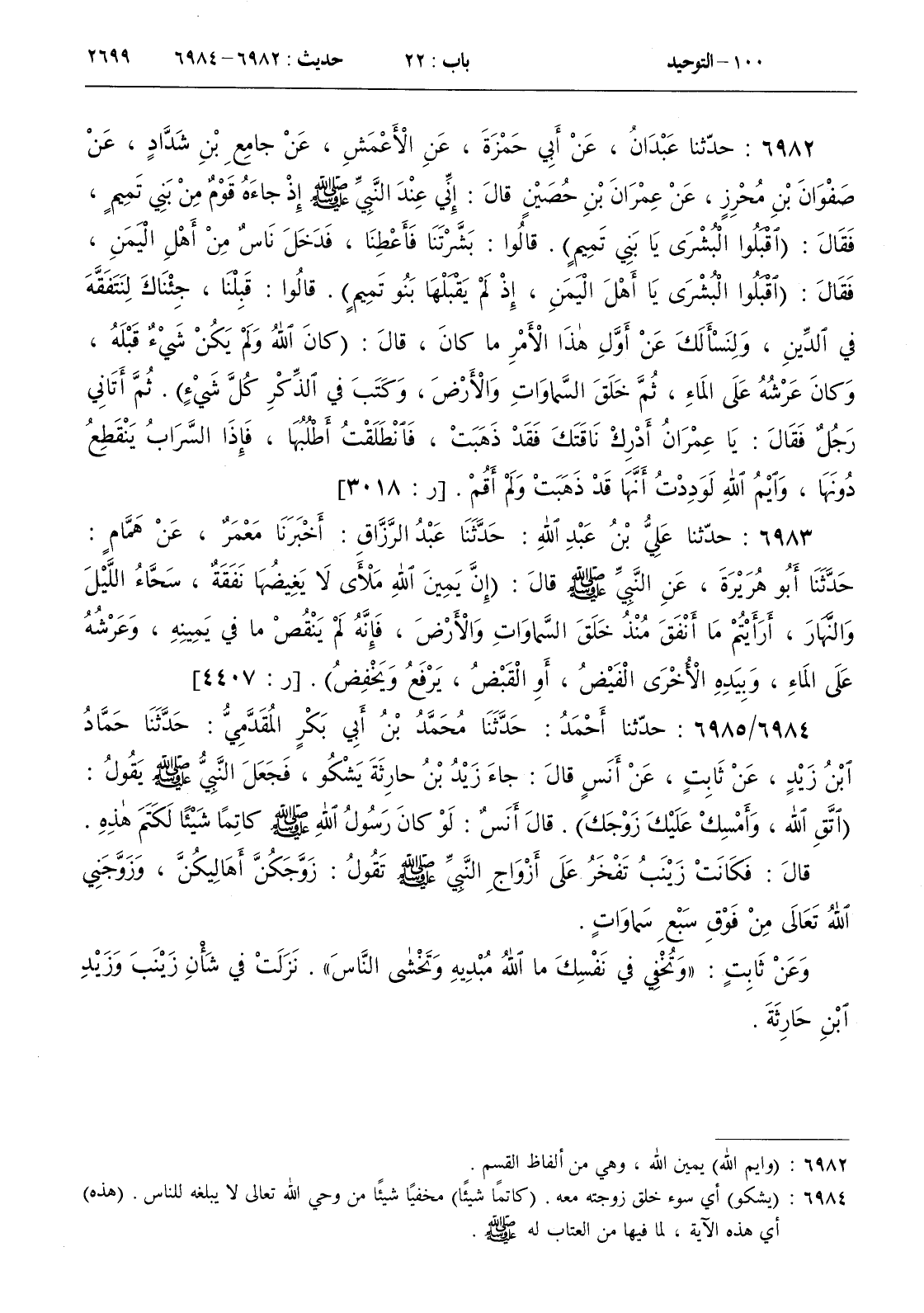 6982 - حدثنا عبدان عن أبي حمزة عن الأعمش عن جامع بن شداد عن صفوان بن محرز عن عمران بن حصين قال