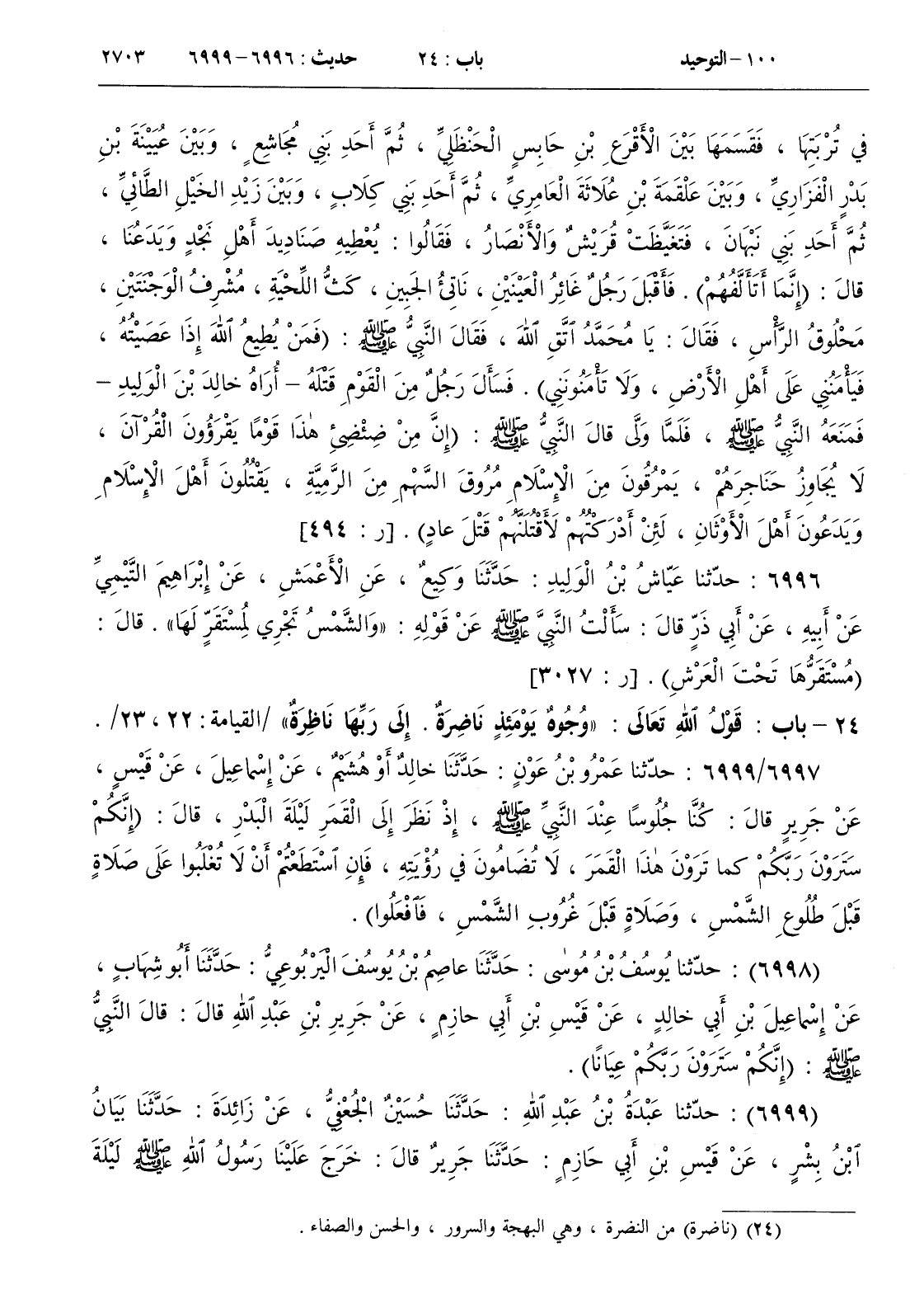 24 - باب قول الله تعالى { وجوه يومئذ ناضرة . إلى ربها ناظرة } / القيامة 22 - 23 /