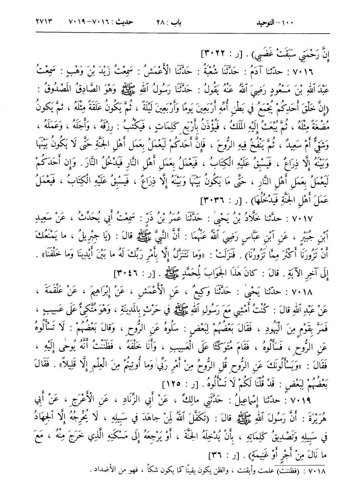 7018 - حدثنا يحيى حدثنا وكيع عن الأعمش عن إبراهيم عن علقمة عن عبد الله قال