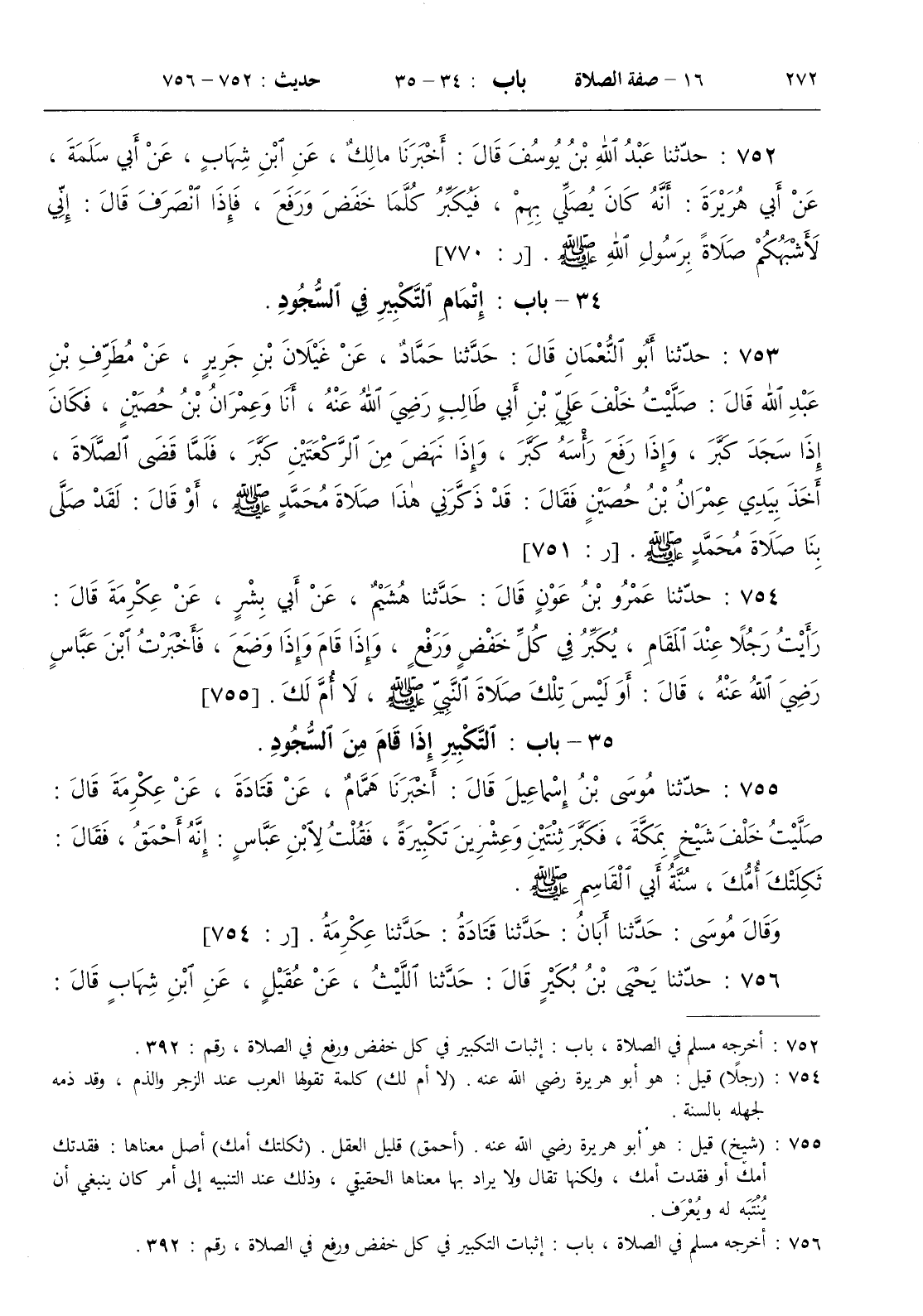 [ ش أخرجه مسلم في الصلاة باب إثبات التكبير في كل خفض ورفع في الصلاة رقم 392