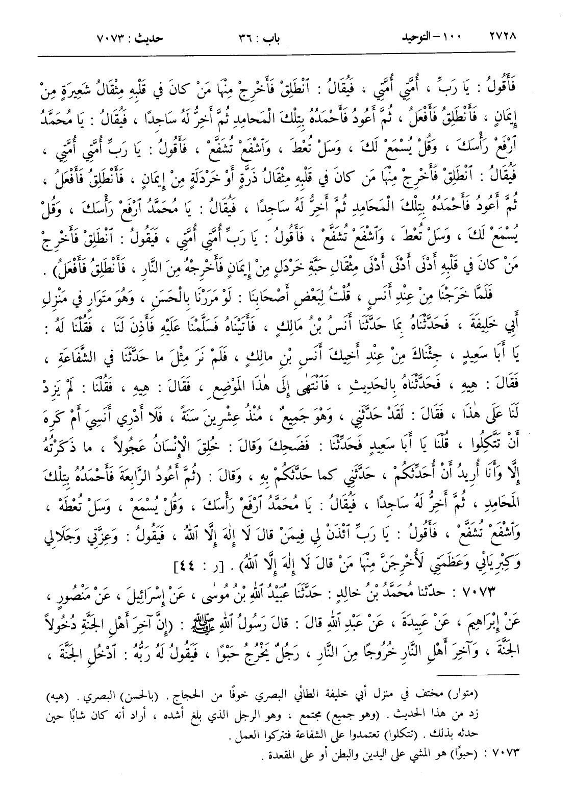 7073 - حدثنا محمد بن خالد حدثنا عبيد الله بن موسى عن إسرائيل عن منصور عن إبراهيم عن عبيدة عن عبد الله قال