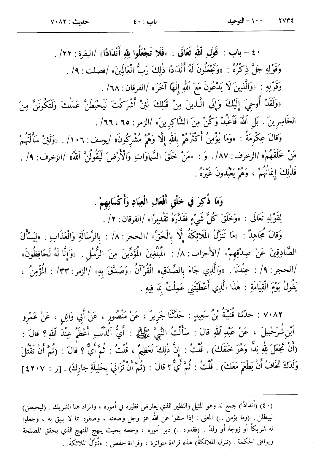 41 - باب قول الله تعالى { وما كنتم تستترون أن يشهد عليكم سمعكم ولا أبصاركم ولا جلودكم ولكن ظننتم أن الله لا يعلم كثيرا مما تعملون } / فصلت 22 /