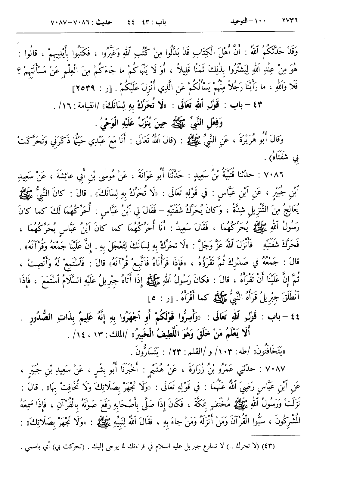 7086 - حدثنا قتيبة بن سعيد حدثنا أبو عوانة عن موسى بن أبي عائشة عن سعيد بن جبير عن ابن عباس