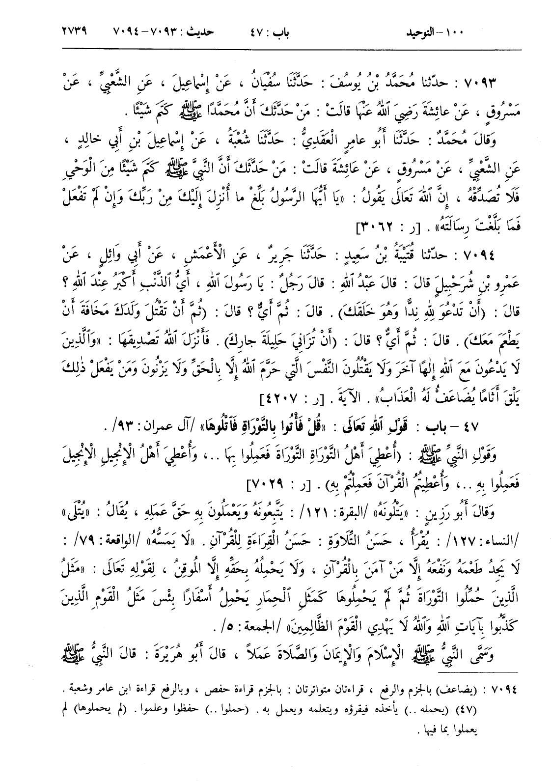 47 - باب قول الله تعالى { قل فأتوا بالتوراة فاتلوها } / آل عمران 93 /
