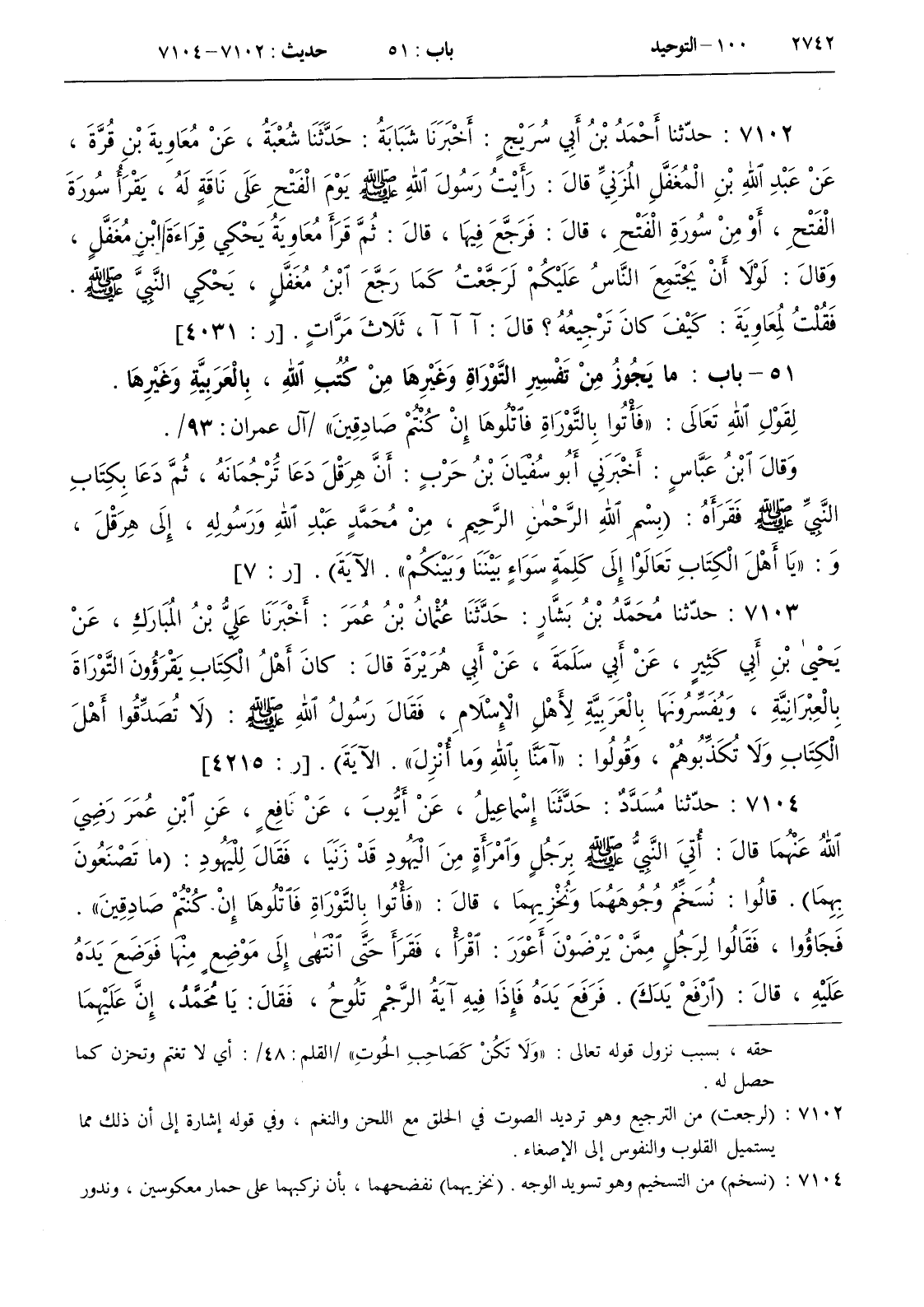 51 - باب ما يجوز من تفسير التوراة وغيرها من كتب الله بالعربية وغيرها