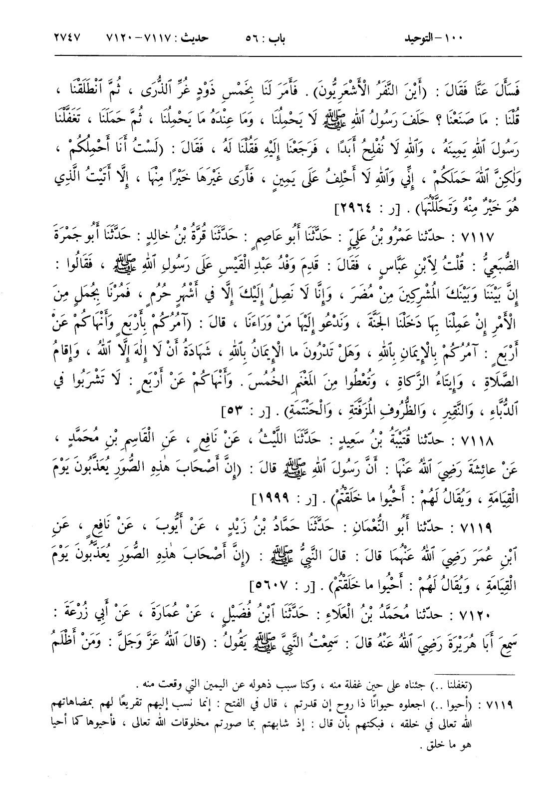 7119 - حدثنا أبو النعمان حدثنا حماد بن زيد عن أيوب عن نافع عن ابن عمر رضي الله عنهما قال