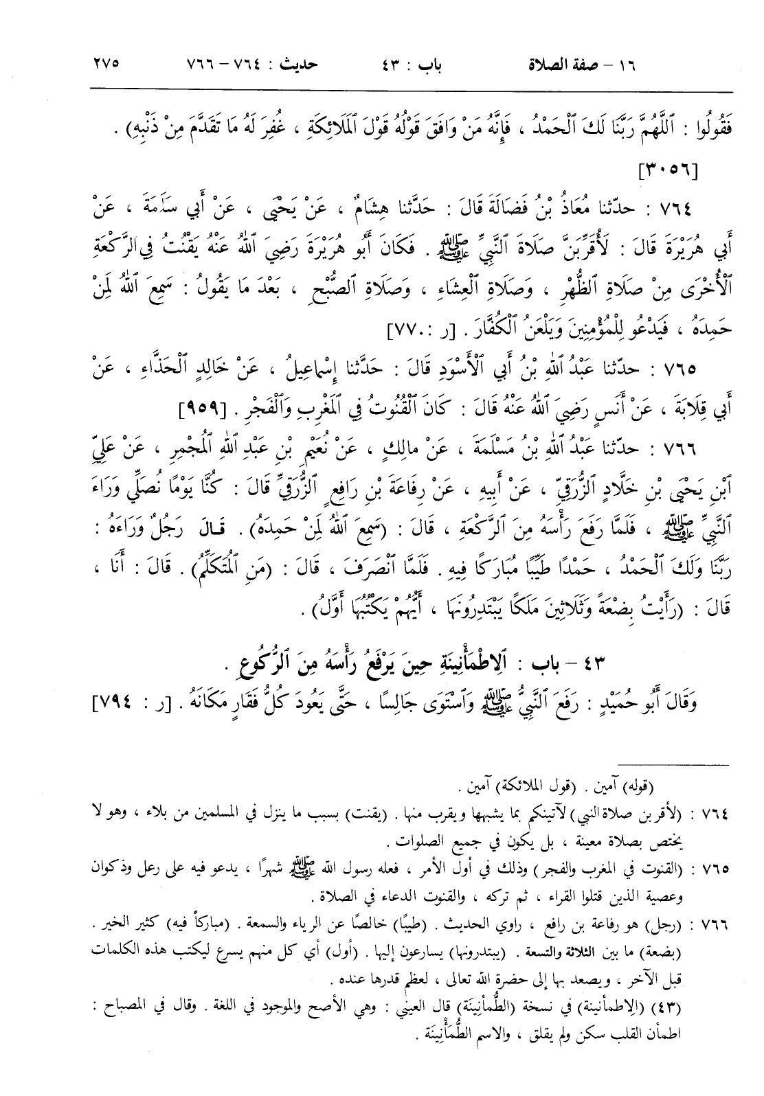 43 - باب الاطمأنينة حين يرفع رأسه من الركوع