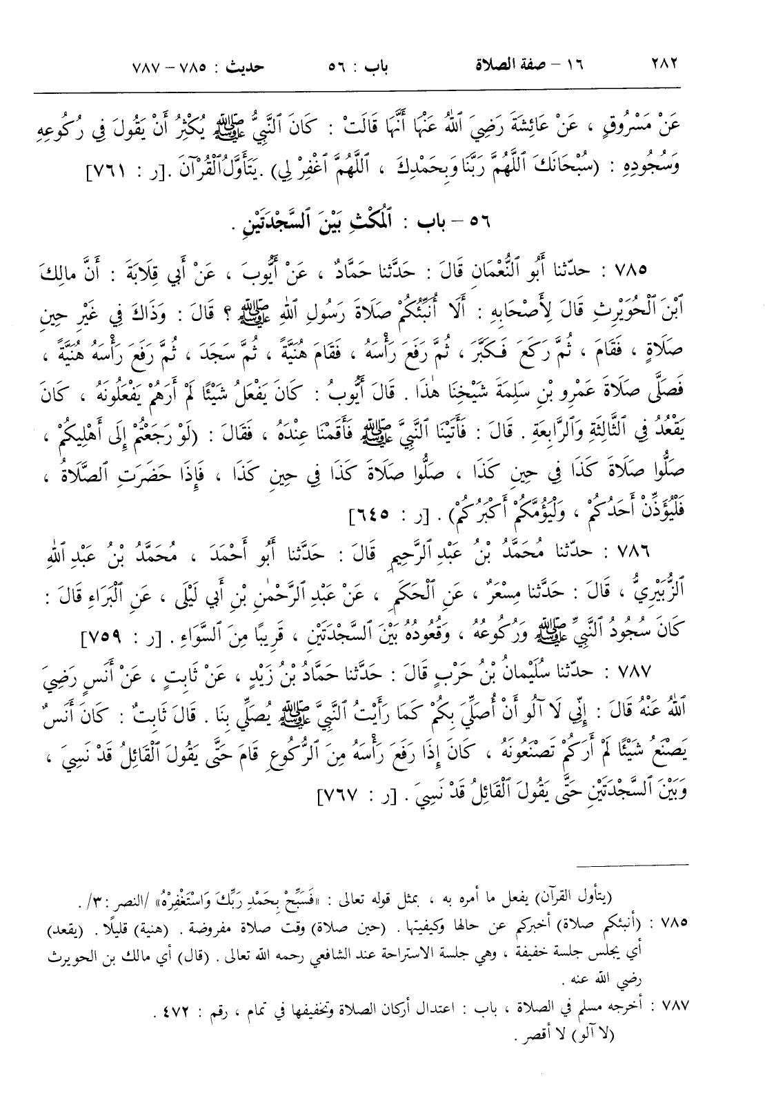 787 - حدثنا سليمان بن حرب قال حدثنا حماد بن زيد عن ثابت عن أنس رضي الله عنه قال