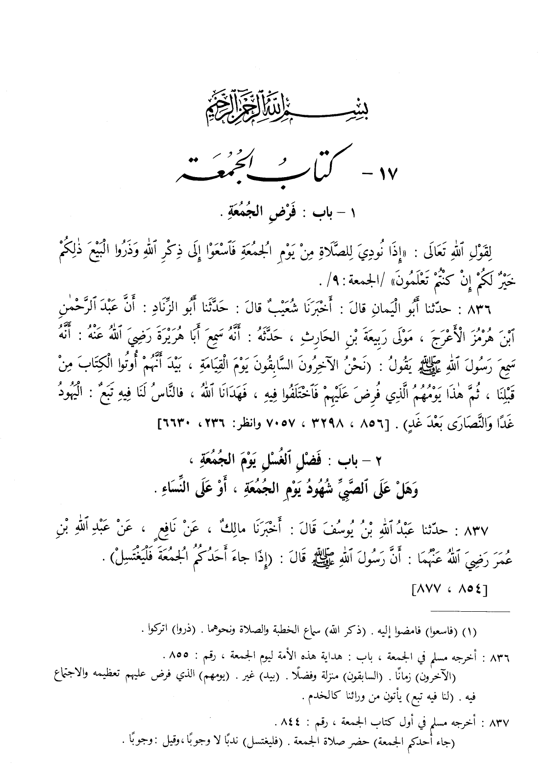 2 - باب فضل الغسل يوم الجمعة وهل على الصبي شهود يوم الجمعة أو النساء