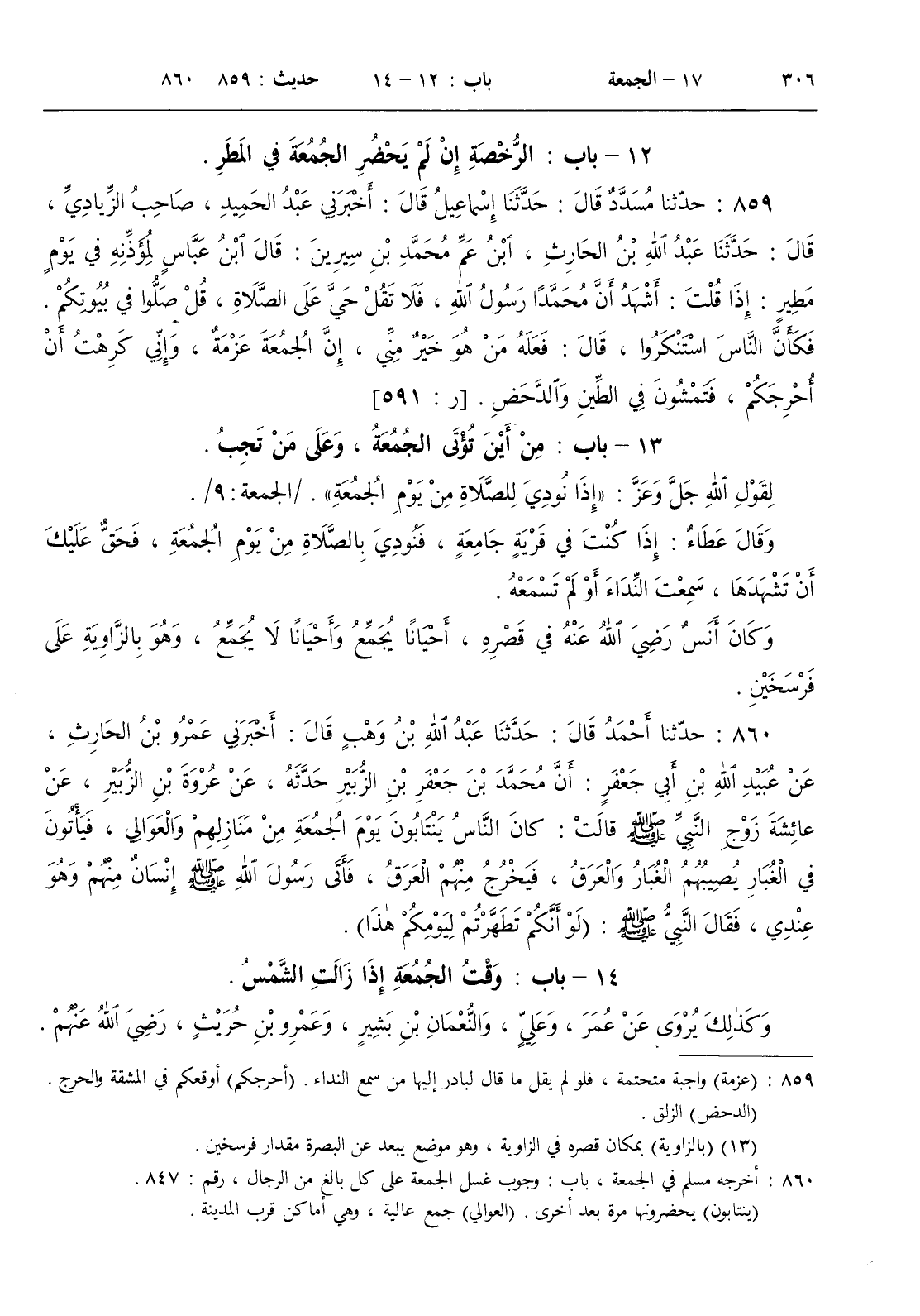 13 - باب من أين تؤتى الجمعة وعلى من تجب