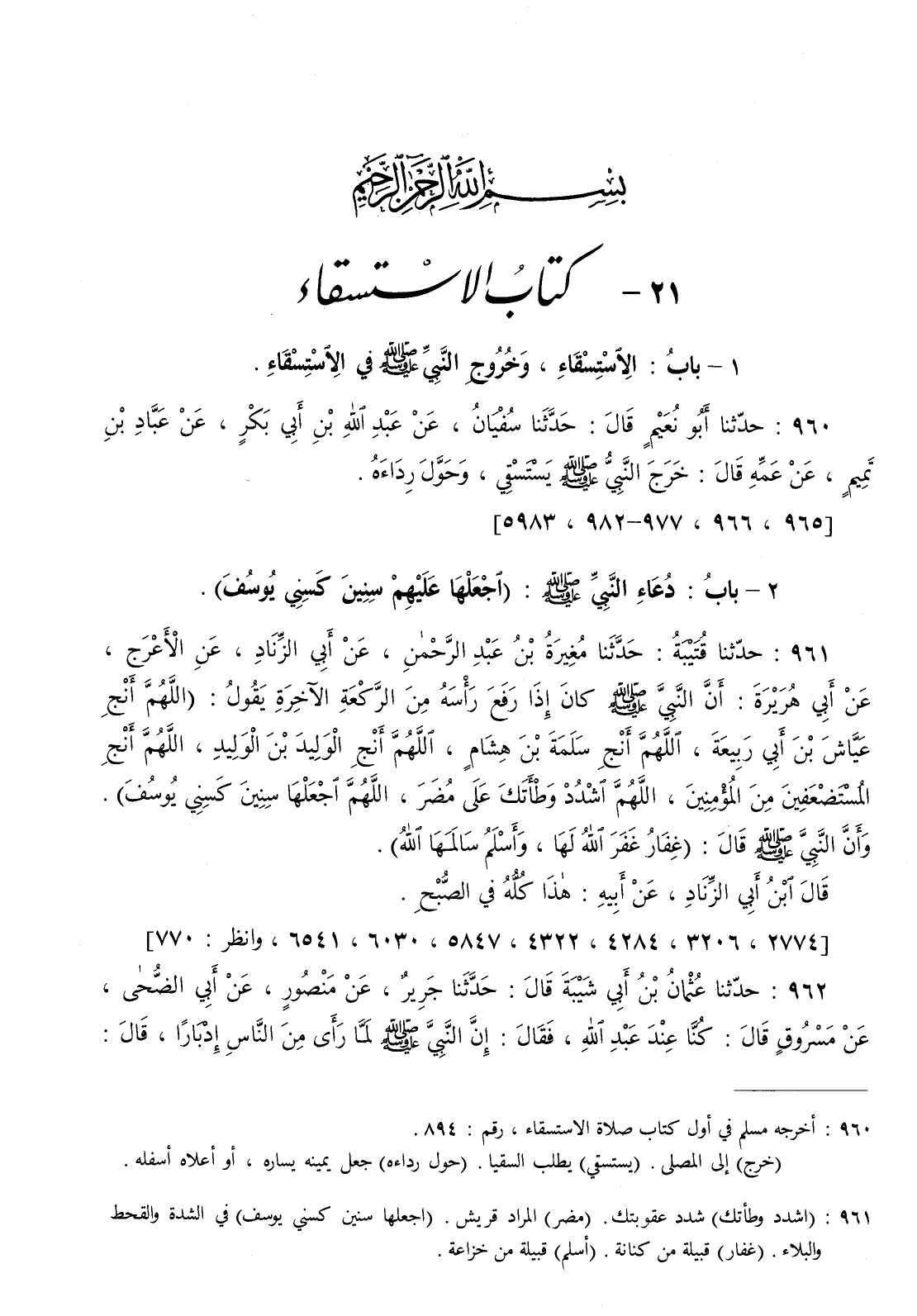 : أن النبي صلى الله عليه و سلم كان إذا رفع رأسه من الركعة الآخرة يقول ( اللهم أنج عياش بن أبي ربيعة اللهم أنج سلمة بن هشام اللهم أنج الوليد بن الوليد اللهم أنج المستضعفين من المؤمنين اللهم اشدد وطأتك على مضر اللهم اجعلها سنين كسني يوسف ) . وأن النبي صلى الله عليه و سلم قال ( غفار غفر الله لها وأسلم سلمها الله )