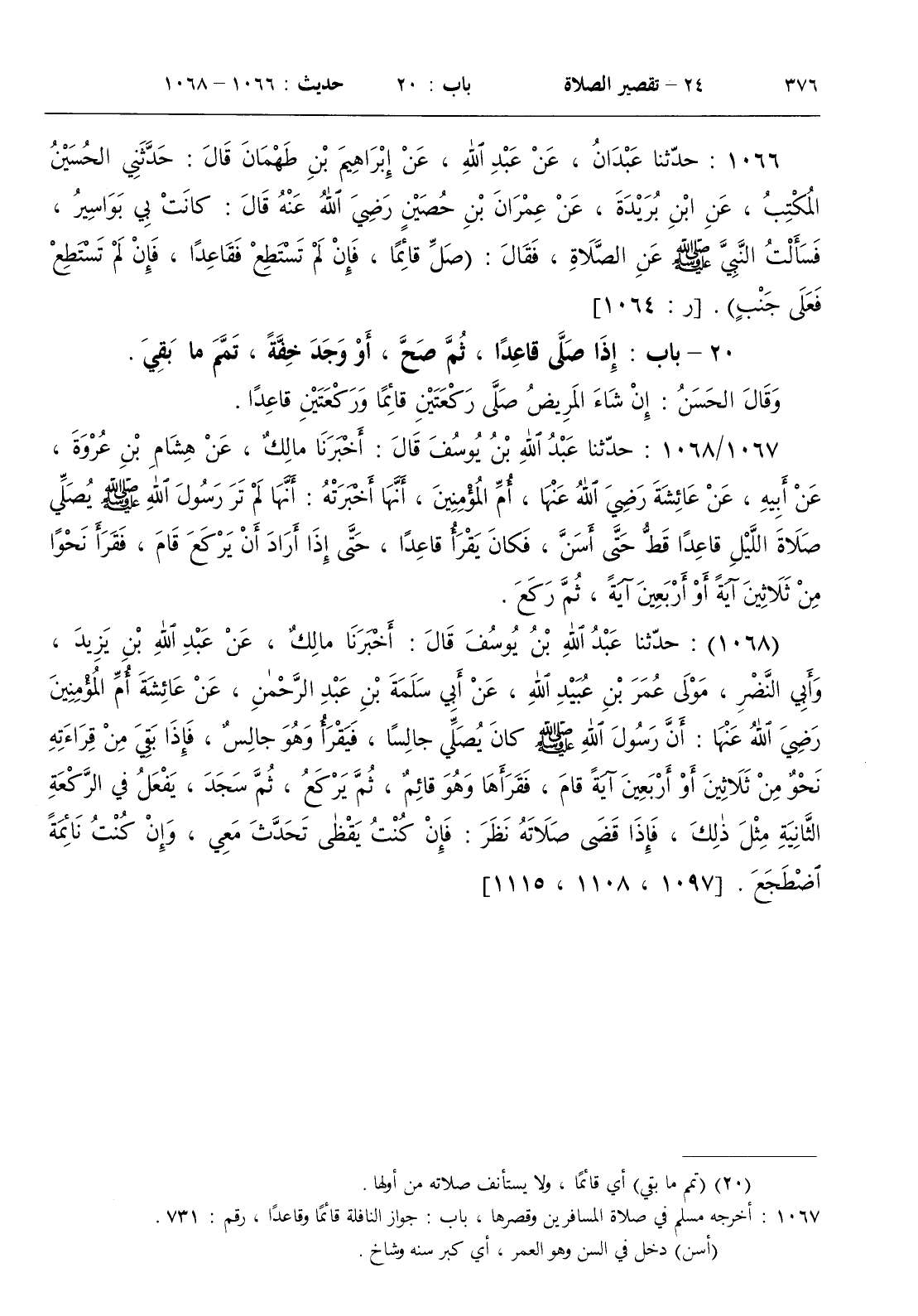 [ ش أخرجه مسلم في صلاة المسافرين وقصرها باب جواز النافلة قائما وقاعدا رقم 731