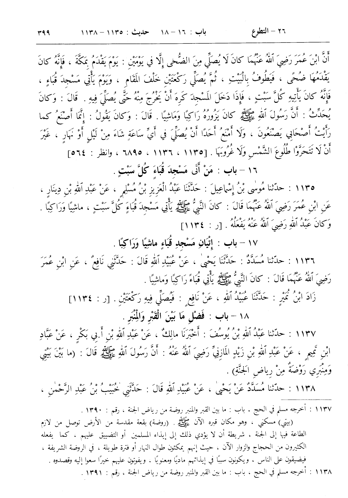 : كان النبي صلى الله عليه و سلم يأتي مسجد قباء كل سبت ماشيا وراكبا . وكان عبد الله رضي الله عنه يفعله