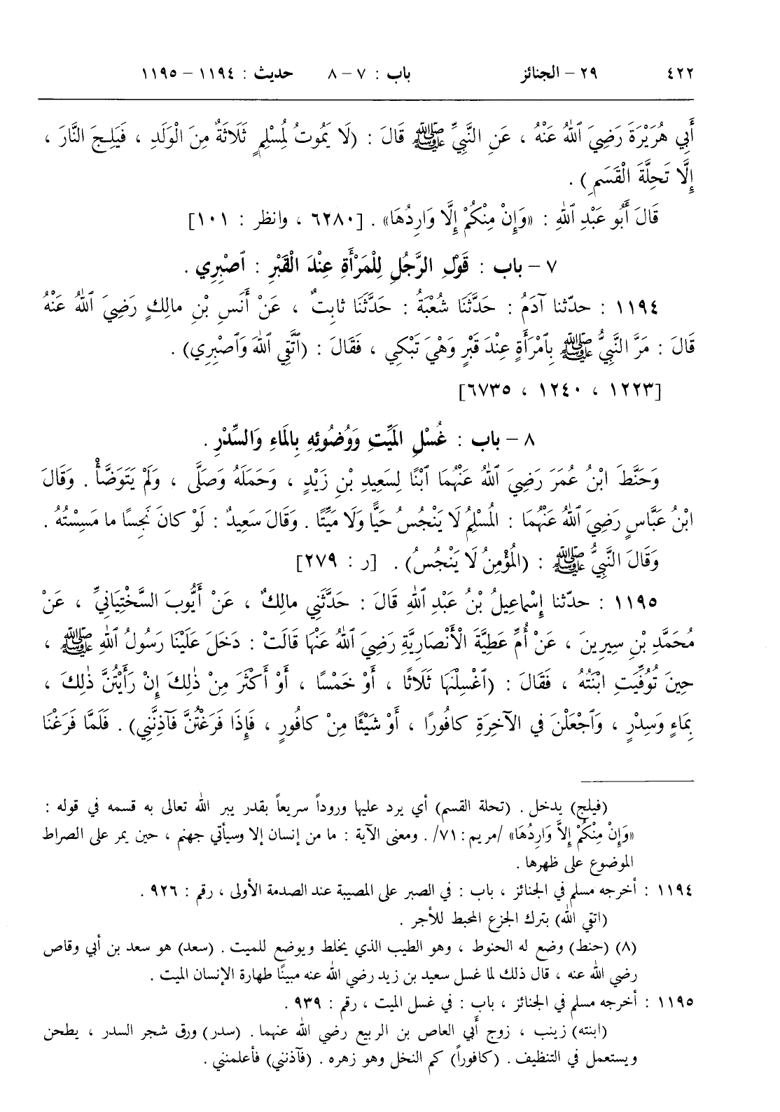 8 - باب غسل الميت ووضوئه بالماء والسدر