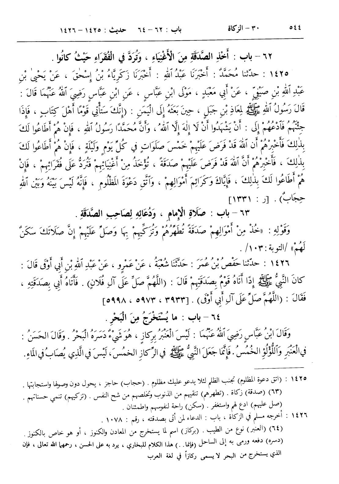 63 - باب صلاة الإمام ودعائه لصاحب الصدقة