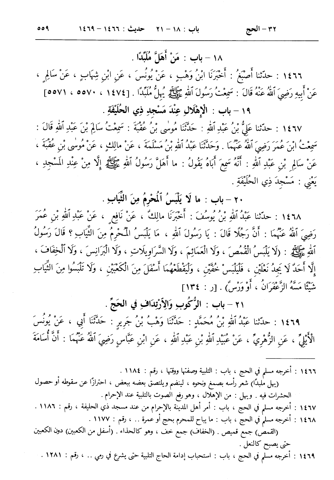 1468 - حدثنا عبد الله بن يوسف أخبرنا مالك عن نافع عن عبد الله بن عمر رضي الله عنهما أن رجلا قال