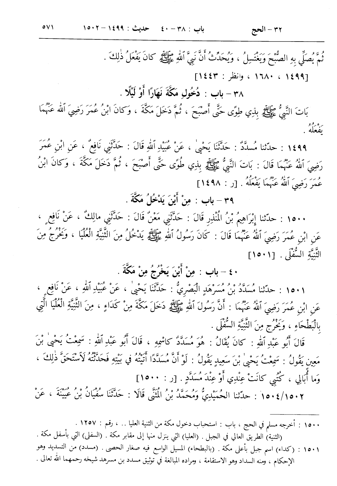 [ ش ( كداء ) اسم جبل بأعلى مكة . ( بالبطحاء ) المسيل الواسع فيه صغار الحصى . ( مسدد ) من التسديد وهو الإحكام ومنه السداد وهو الاستقامة ومراده المبالغة في توثيق مسدد بن مسرهد شيخه رحمهما الله تعالى ]