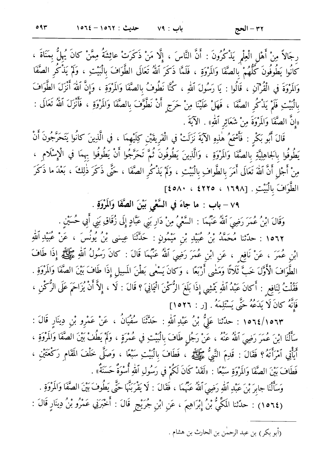 : سألنا ابن عمر رضي الله عنه عن رجل طاف بالبيت في عمرة ولم يطف بين الصفا والمروة أيأتي امرأته ؟ فقال قدم النبي صلى الله عليه و سلم فطاف بالبيت سبعا وصلى خلف المقام ركعتين فطاف بين الصفا والمروة سبعا { لقد كان لكم في رسول الله أسوة حسنة }